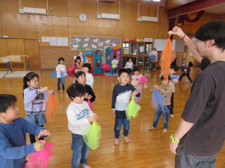 遊戯室には、3・4・5歳児のお友だちの短冊が飾られています。