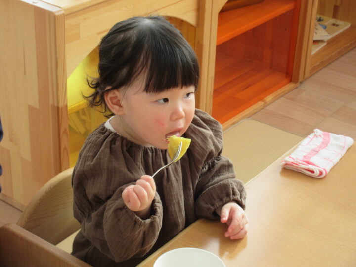 最近のひよこ0歳児の子どもたちは、2月3日の節分の日に向けて、鬼のお面作りをしています。