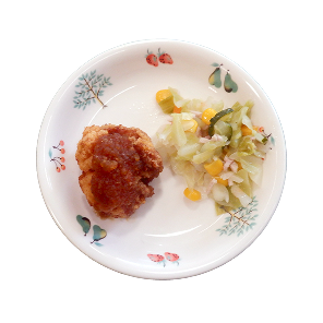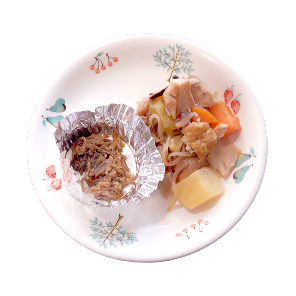 子どもの五感を育み、食べる楽しさと大切さを実感してもらうことを目的に、こども園の畑でじゃがいも・さつまいも・なすやキュウリなどの野菜を育てています。収穫した野菜は給食にも使用され、「こども園の野菜かな?」と野菜が少し苦手な子も喜んで食べています。 7月には収穫したじゃがいもを使用し、カレーパーティーを行います。3歳児が野菜を洗い、4歳児が野菜の皮をむき、5歳児が野菜を切り、完成したカレーを全園児で味わいます。