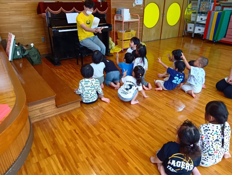 他にも、おみ先生のピアノに合わせて歌をうたったり、手を叩いたり繋いだりなどの手遊びもしていますよ。楽しかったね♩