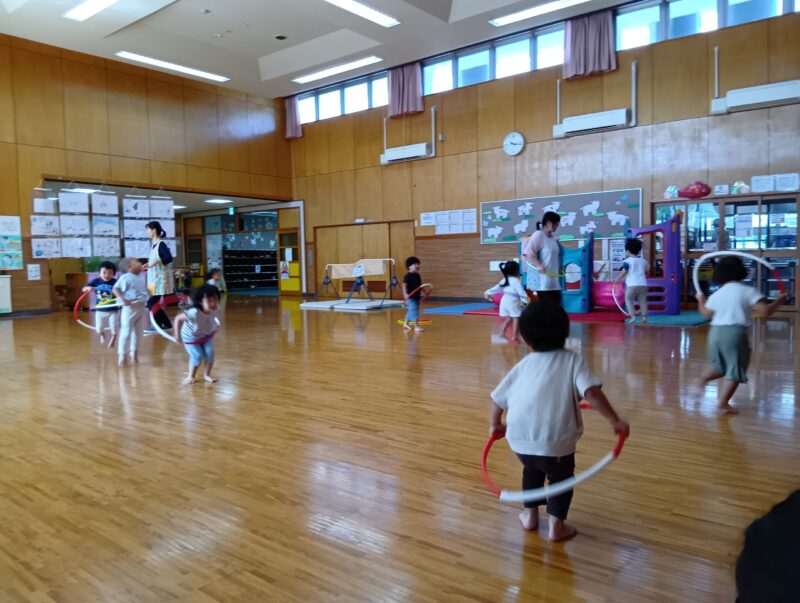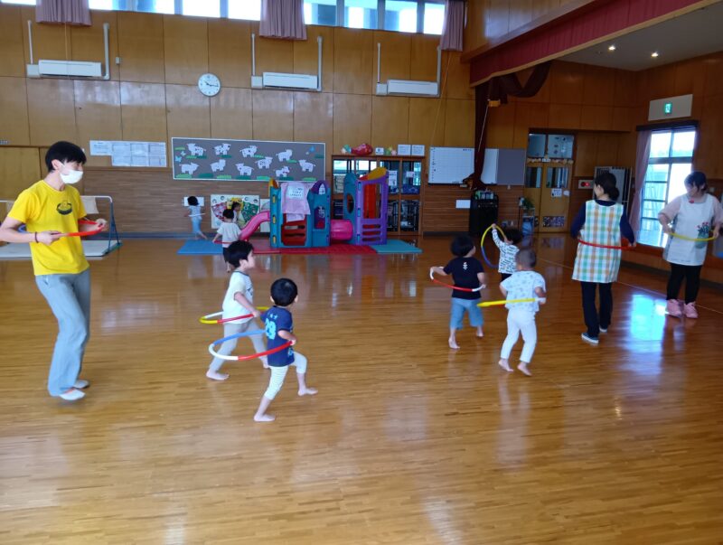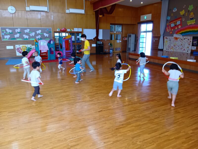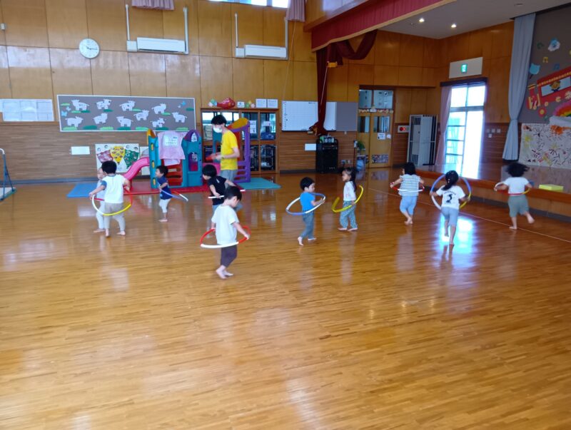 読み終わると、みんなもフラフープを持って動物に変身です。