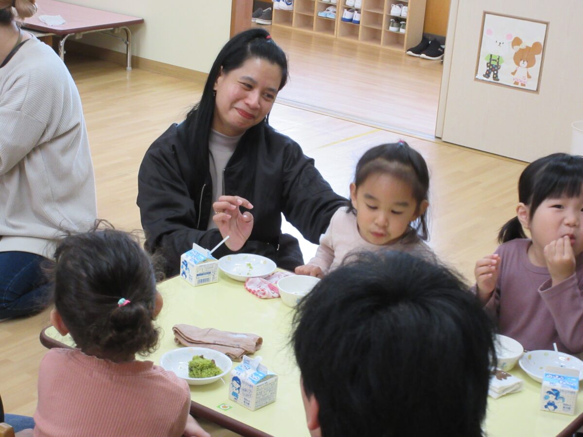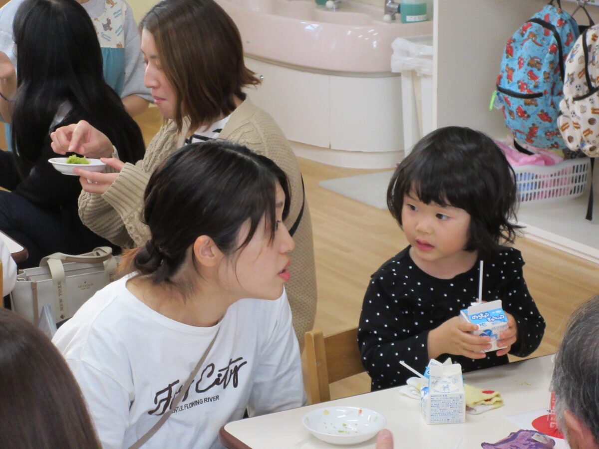 先週はひよこぐみさん、ことりぐみさんの「おやつ参観」がありました。