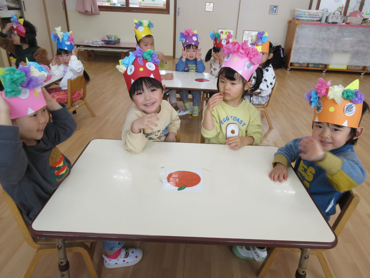 みんなで豆まきをするためにことりぐみさんはかわいい「おにのお面」を作りました。