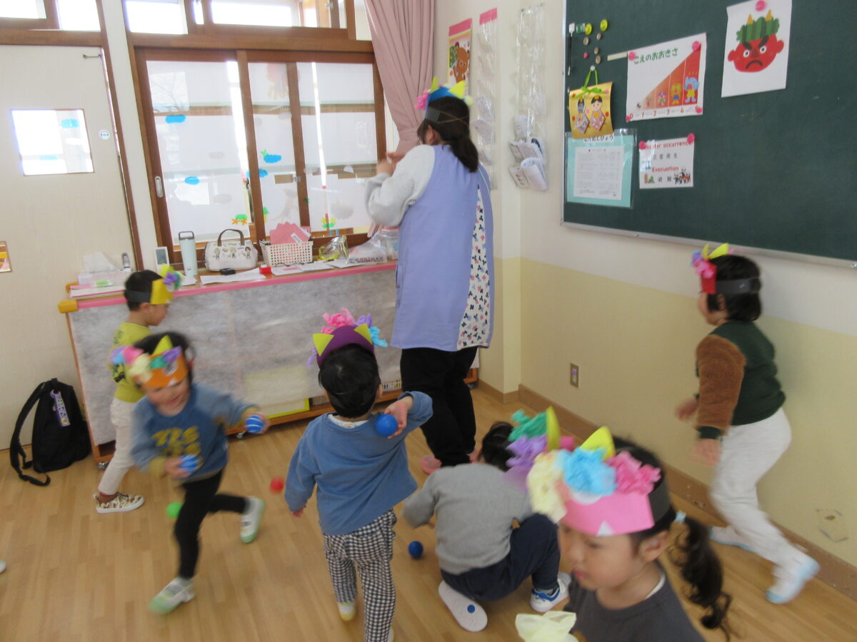 その後、お部屋に戻って豆まきをしました。
