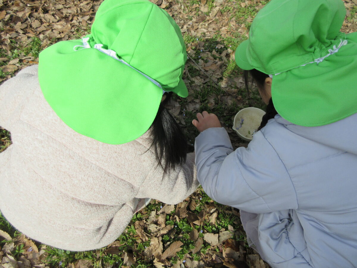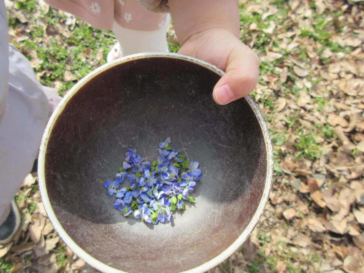 園庭にはきれいな紫のお花が咲いていました。おままごとでまぜまぜしてきれいなお花ご飯を作ったりしていました。