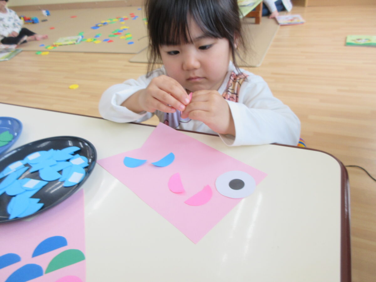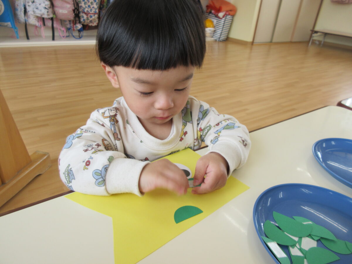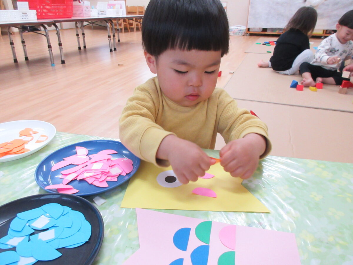 たくさん貼る子、すぐに終わりにする子と様々でした。来月廊下に展示しますので楽しみにしていてくださいね。