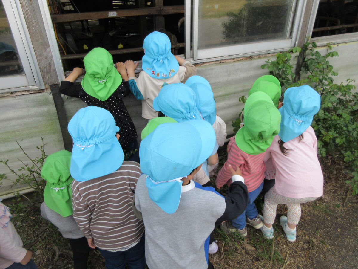 牛さんを近くで見ると目を丸くしていた子ども達。慣れてくるともっと近くで見ようと前のめりになっていました。怖がる子もいませんでした!