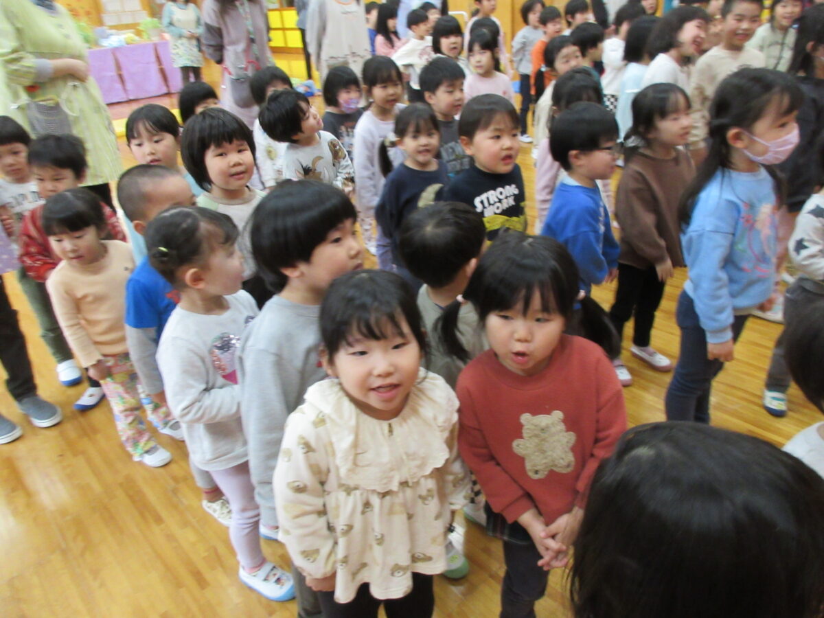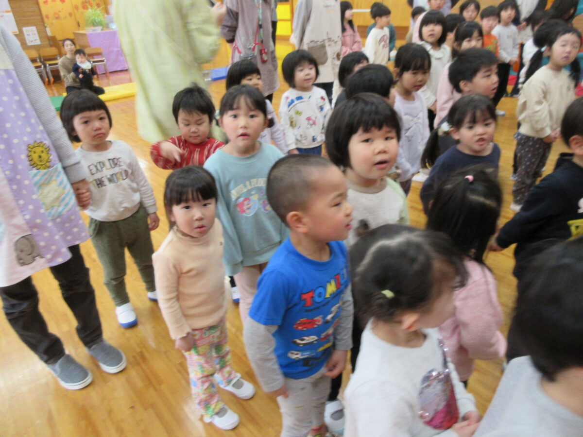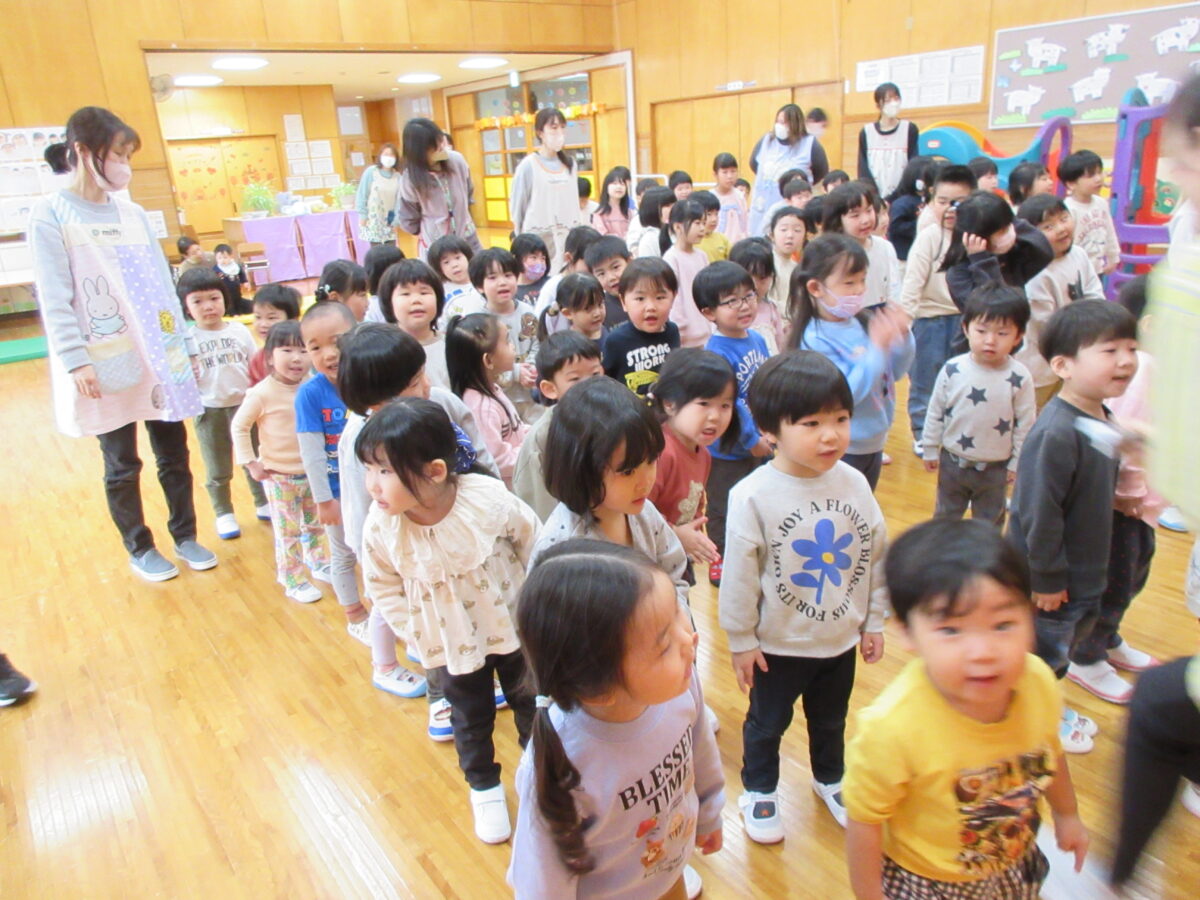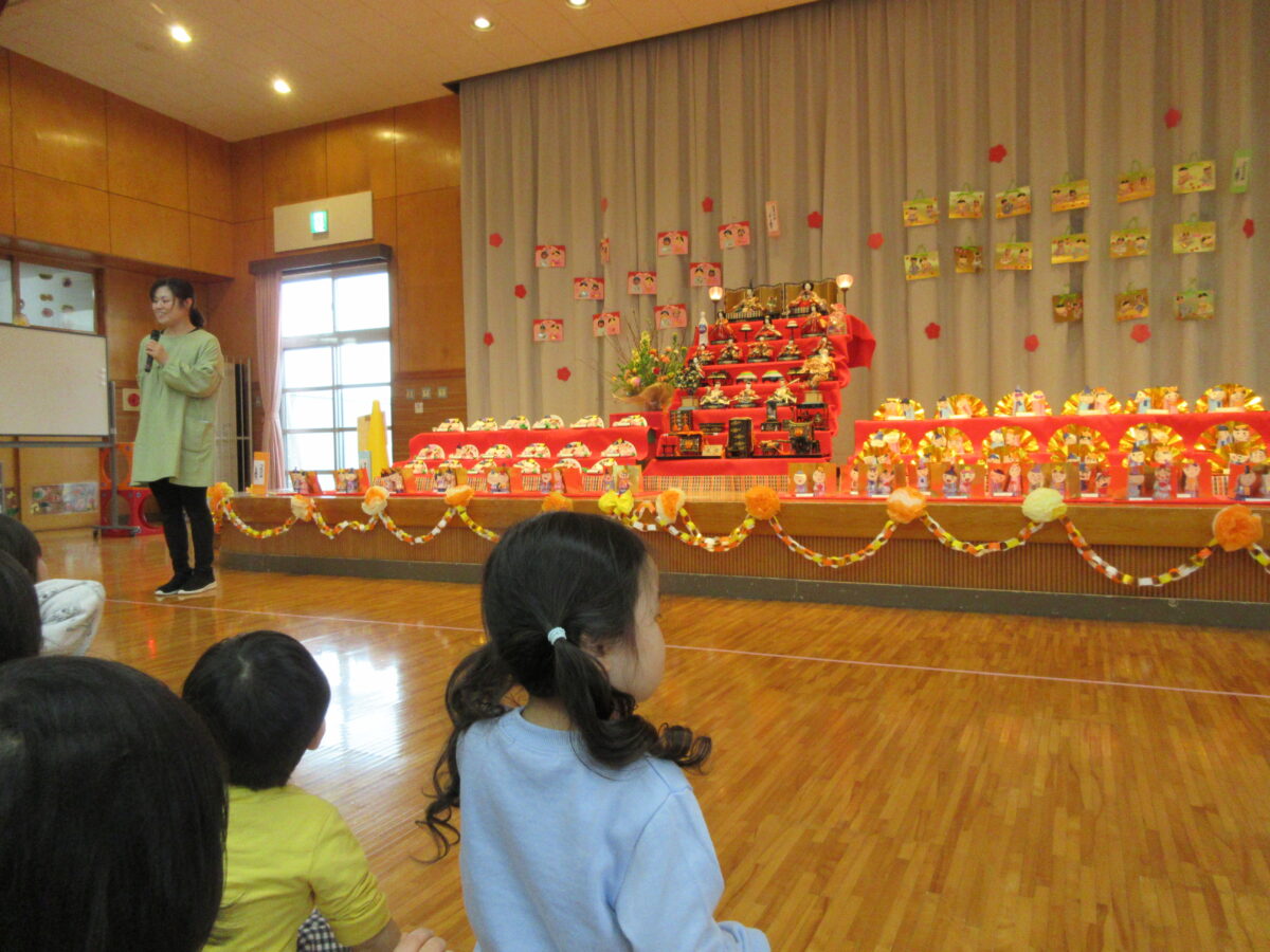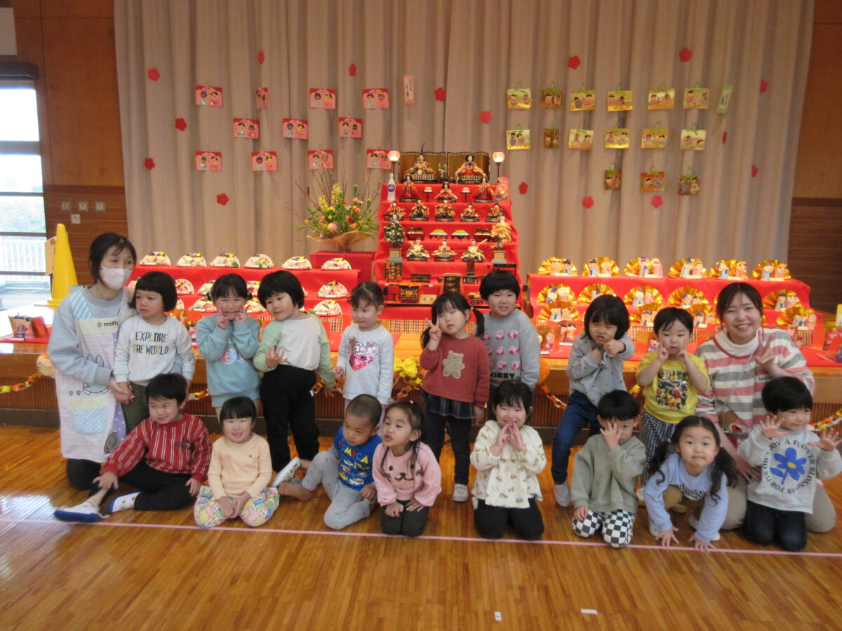 遊戯室にひな人形が飾られた時から「おひなさま綺麗だね。」と、嬉しそうにしていた子ども達。