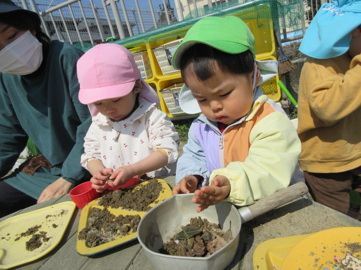 子ども達はとにかくお外が大好き!天気が良い日は園庭に出て、好きな遊びを見つけて夢中になって遊んでいます。