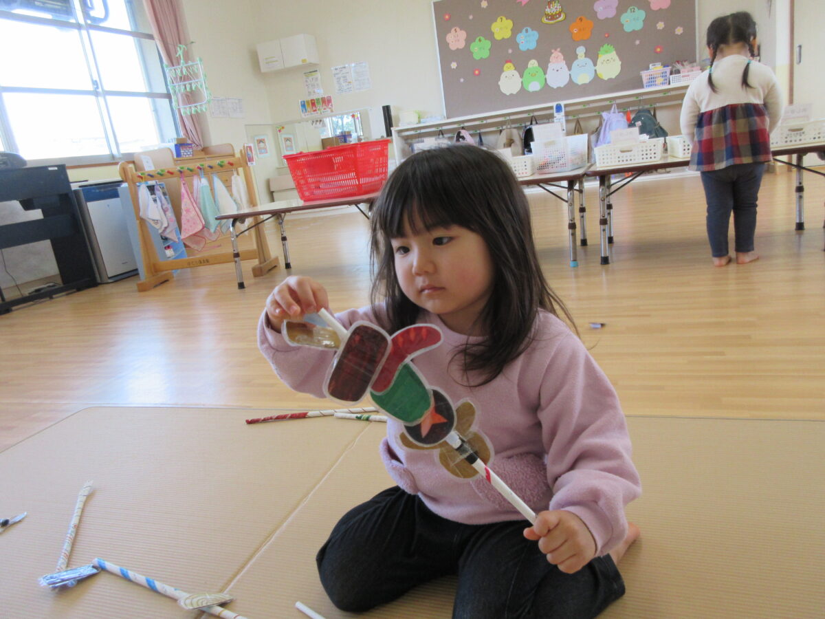 園庭では鯉のぼりが泳ぎ、子ども達も釘付けです。一生懸命触ろうと手を伸ばしています。