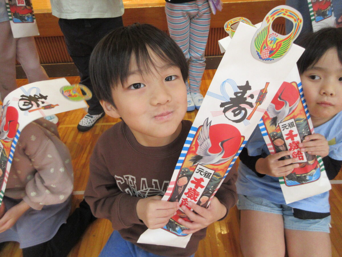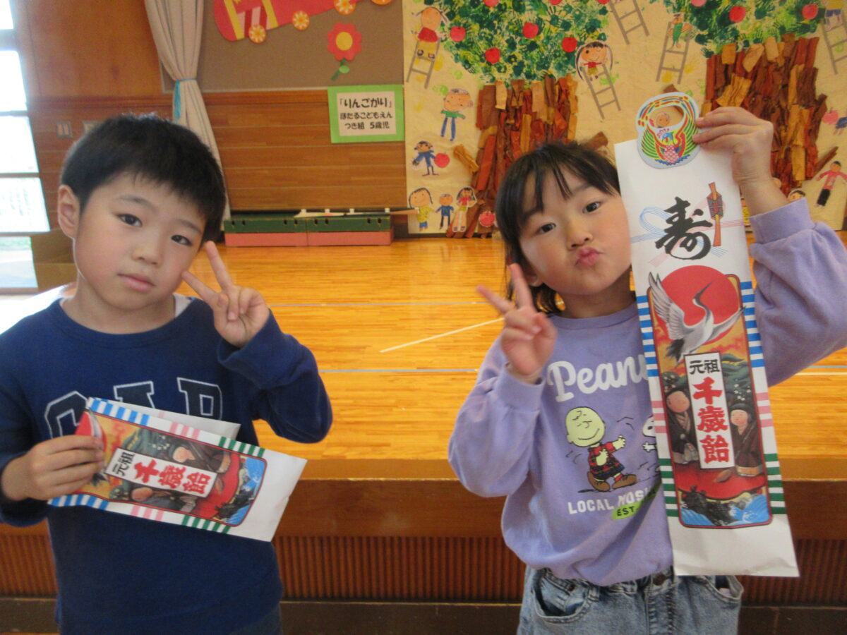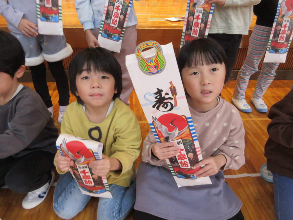 千歳飴の意味や願いを知り、一人ひとり嬉しそうに園長先生から受け取っていました。