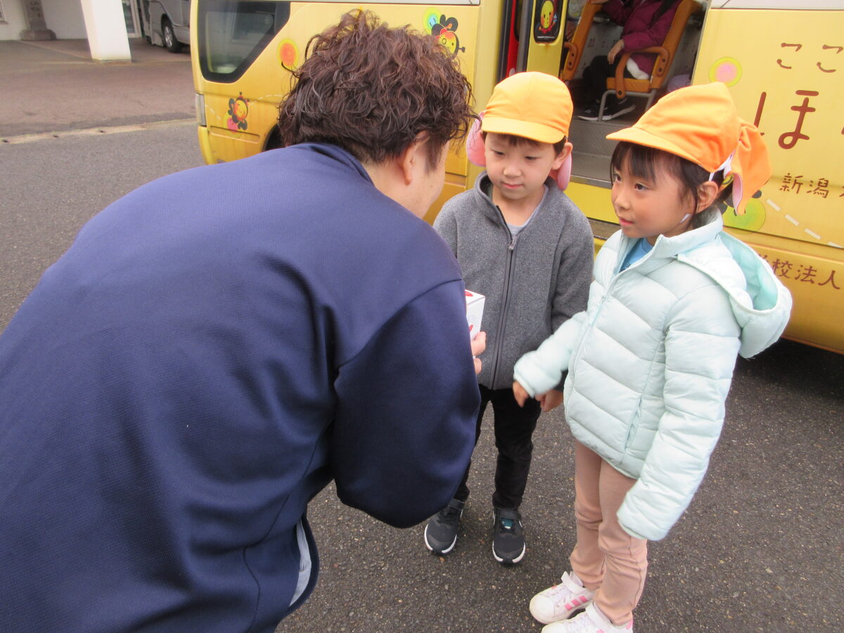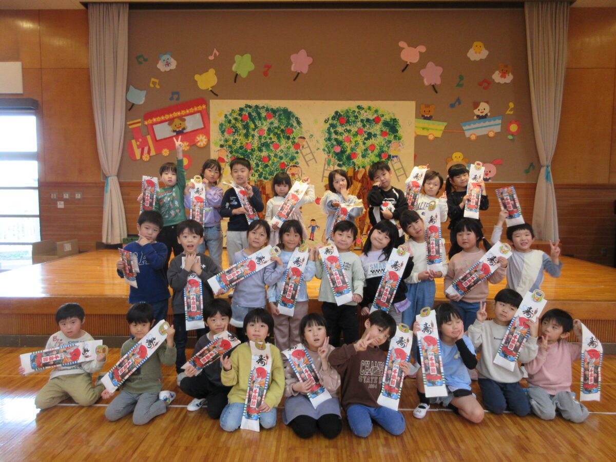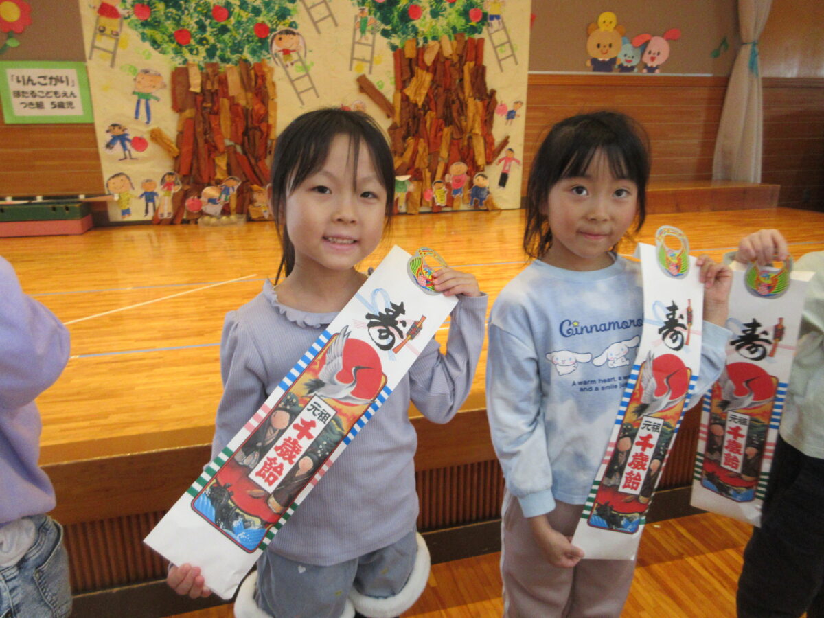 千歳飴の意味や願いを知り、一人ひとり嬉しそうに園長先生から受け取っていました。