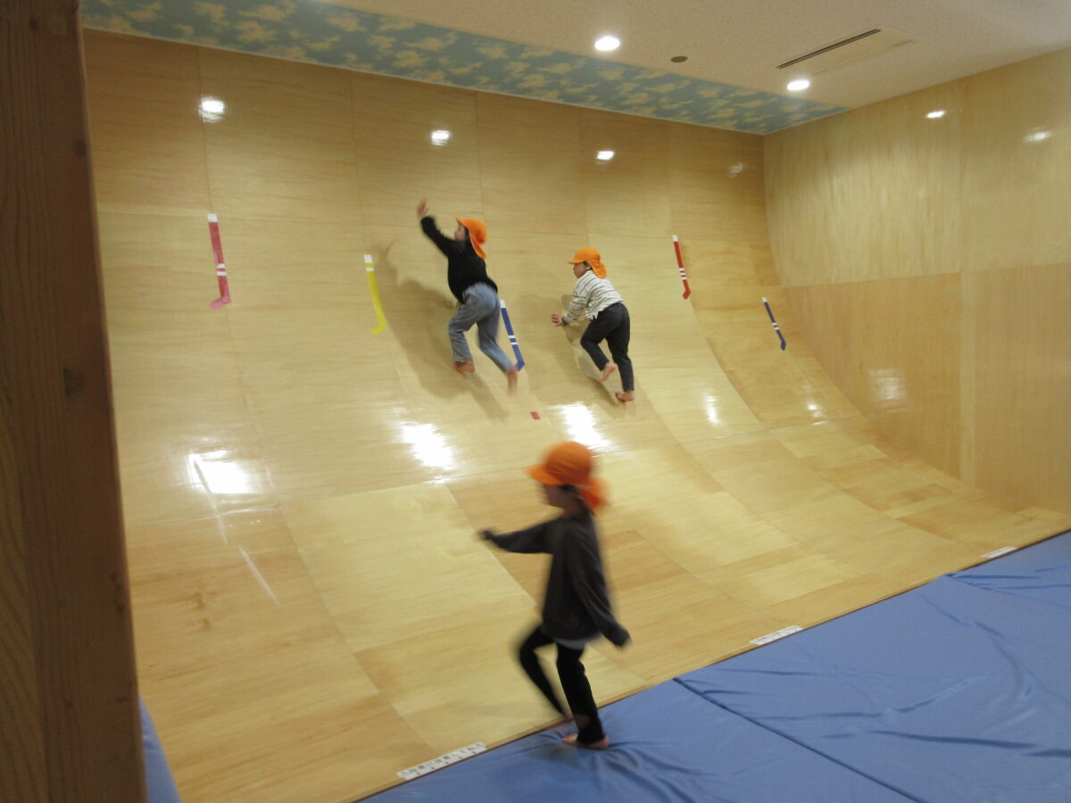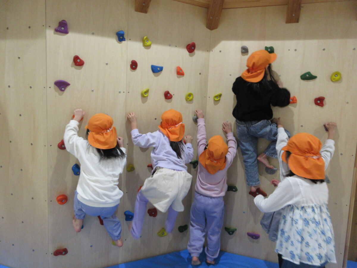 そり立つ壁では、天井までとどくかチャレンジをしている子がいました。お友達が天井までとどいたり天井の近くまで行くとみんなで喜んでいました!