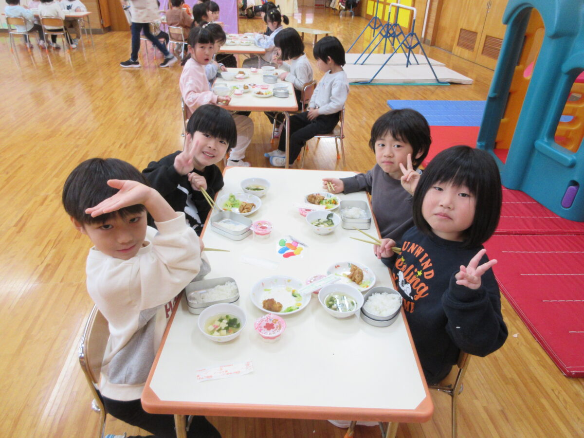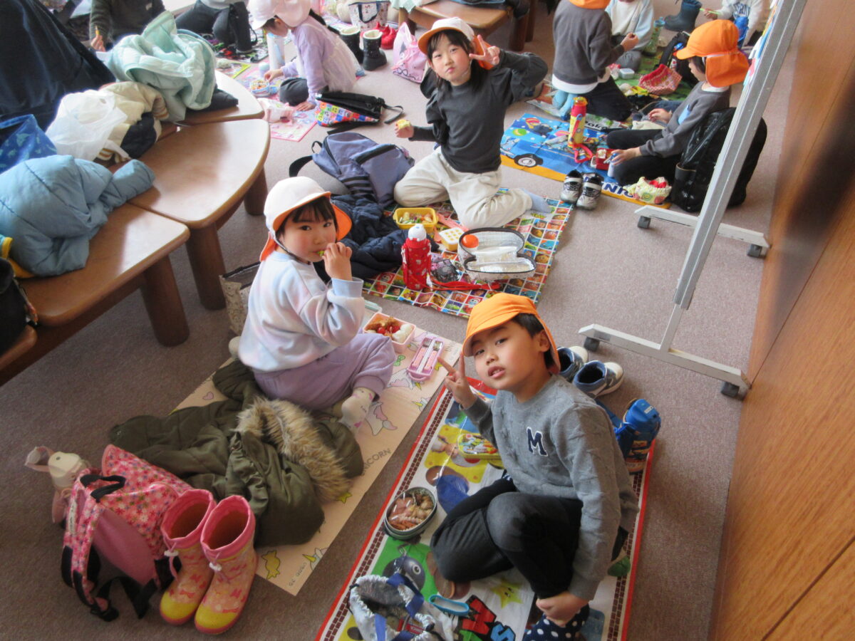 お昼はお家の方から作ってもらった美味しいお弁当を食べました!みんなもとっても楽しみにしていて、ニコニコで食べていました!