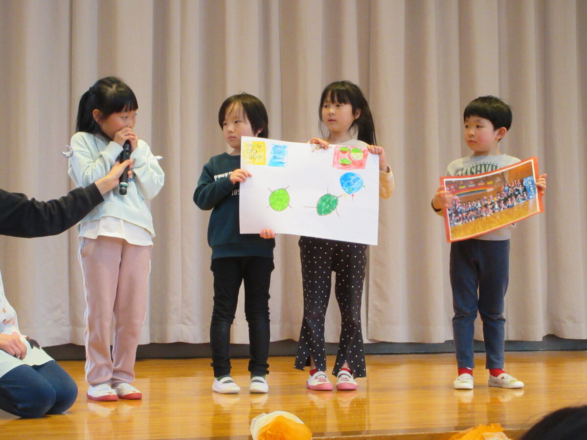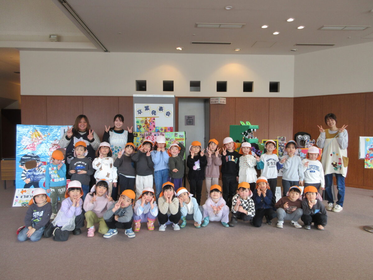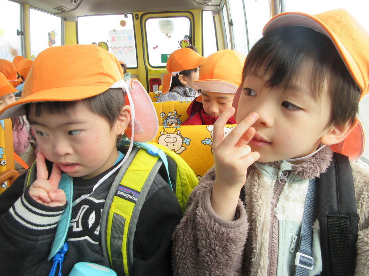 水曜日は、お別れ遠足で市民プラザまで園バスに乗り、こども医療専門学校の卒業発表会を見に行きました。久しぶりに遠い所までバスに乗って行くので、ウキウキのみんな!