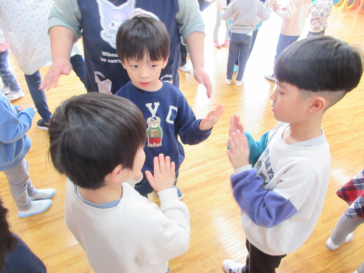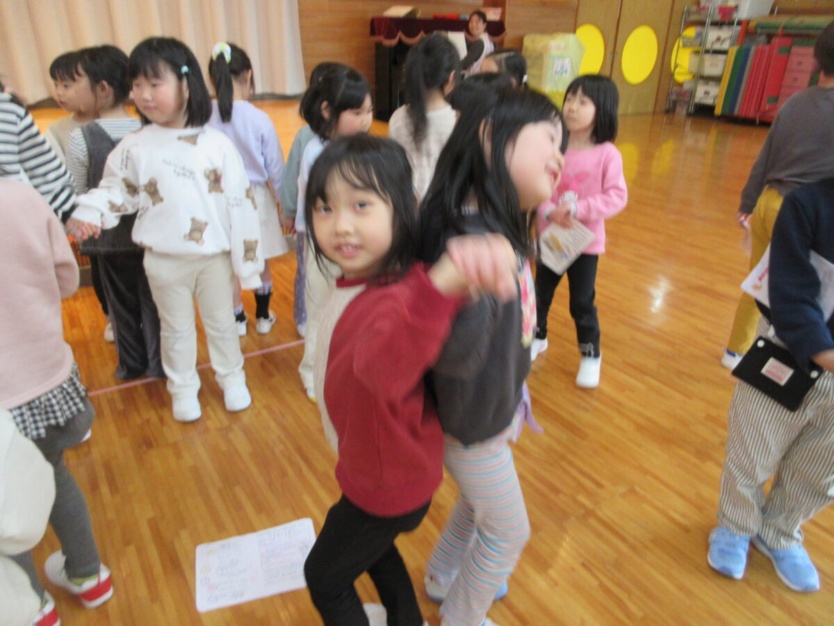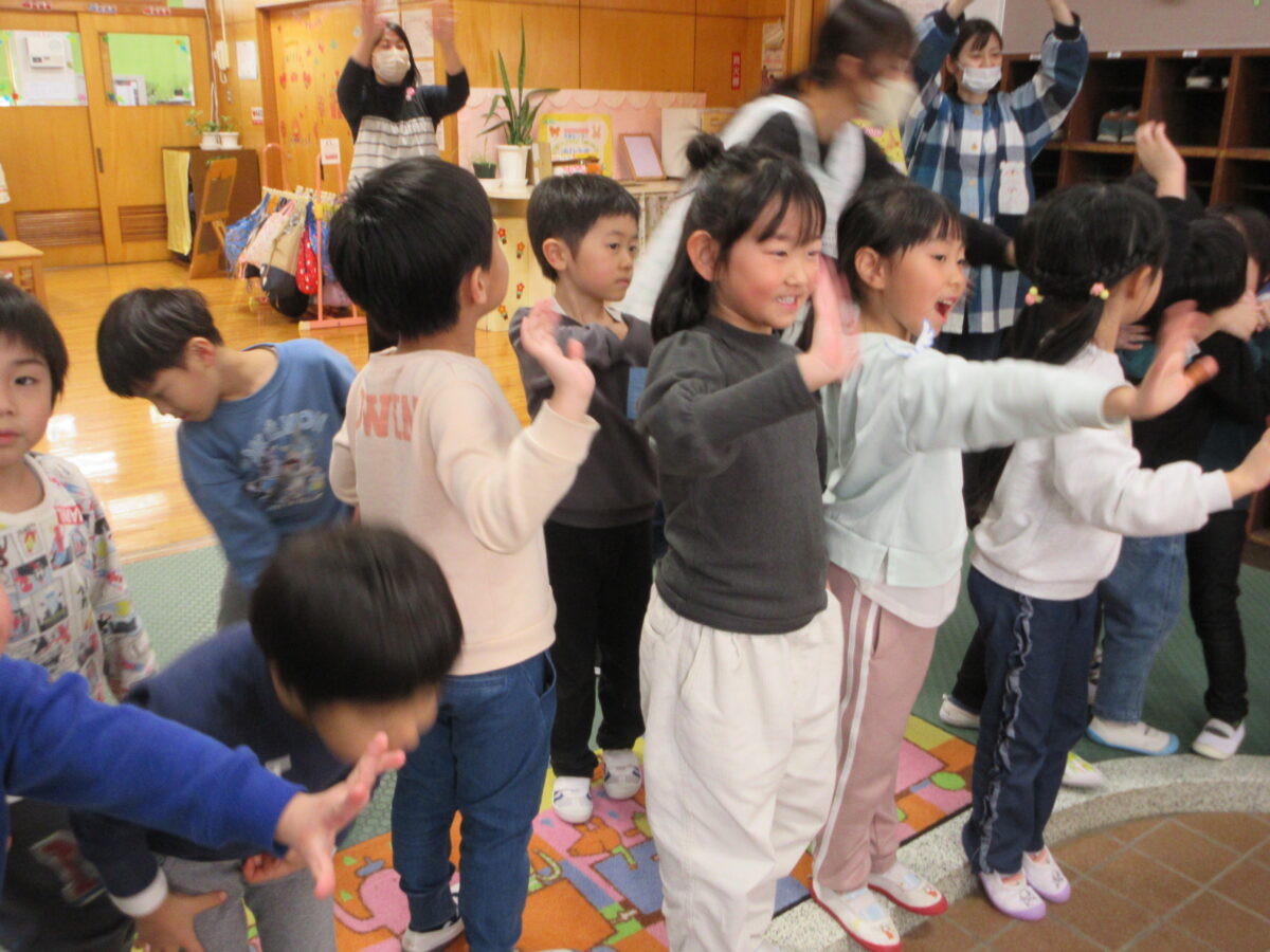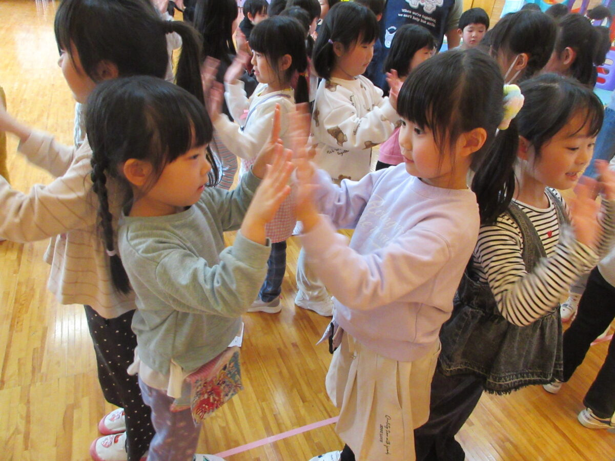 初めはお互い緊張している様子もありましたが、一緒に給食を食べ、ふれあい遊びや楽しかった園の行事の発表、自由遊び、ダンスを楽しみ、最後におやつも一緒に食べ、時間を過ごすうちにあっという間に仲良くなっていました!最後のお見送りでは、名残惜しい姿も見られましたよ。