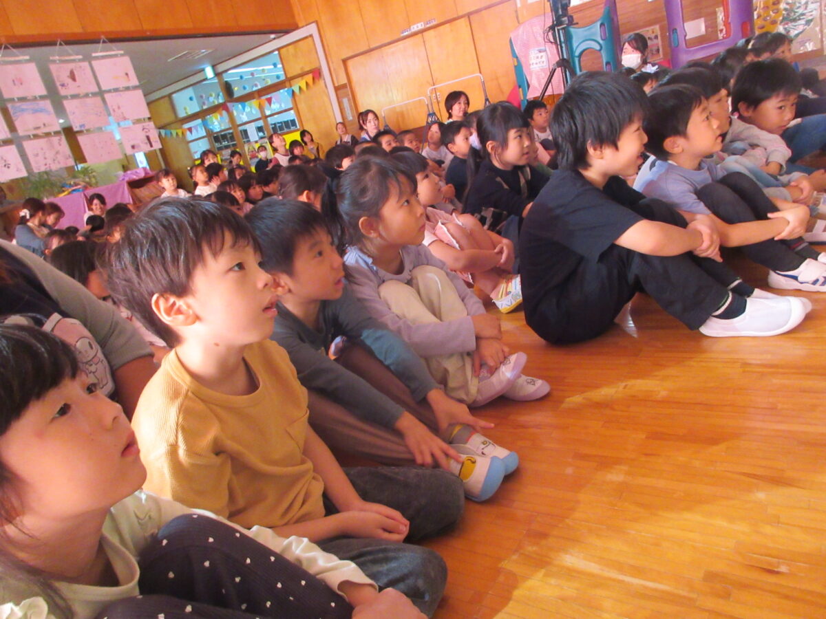 子どもたちもとても楽しみにしていたので、一番前でワクワクしながら待ち、始まるとお話に釘付けで見入っていました!途中の仕掛けにビックリする子もいましたが、最後はみんな笑顔で「楽しかった~!」と言っていましたよ。