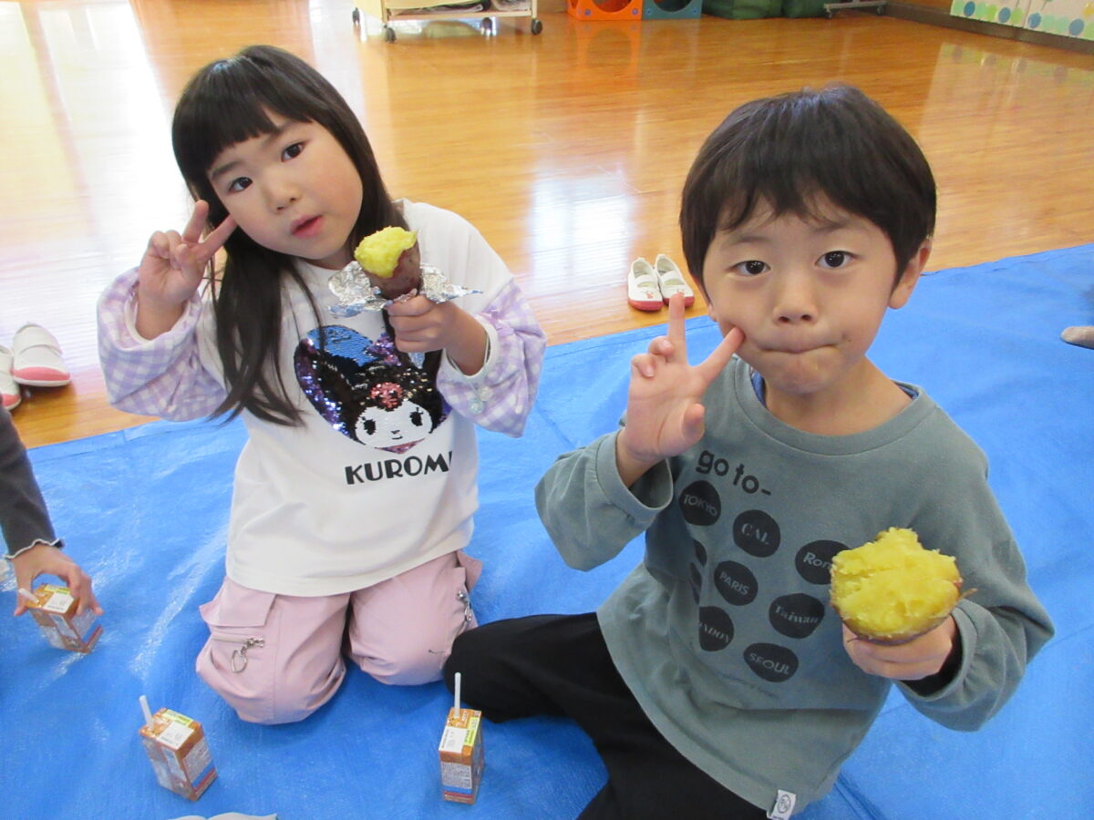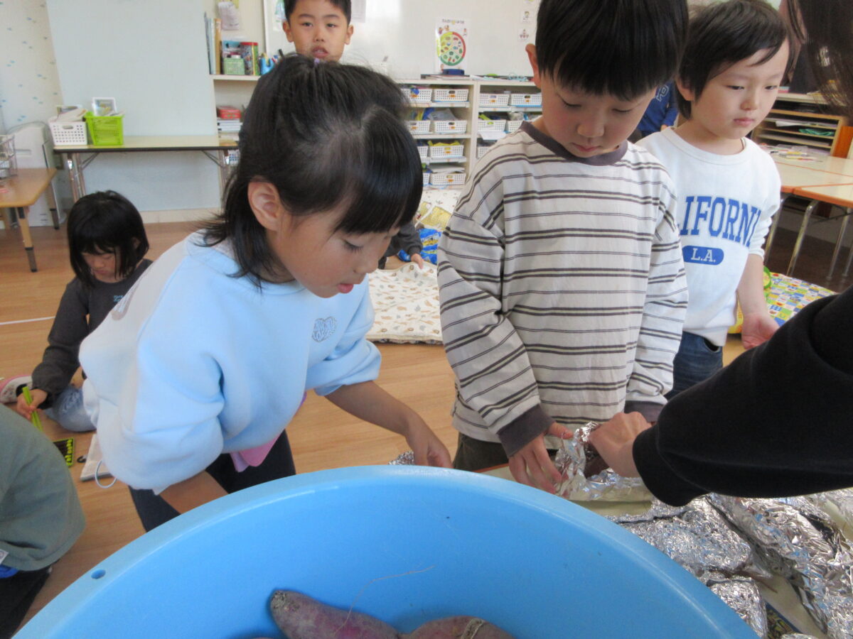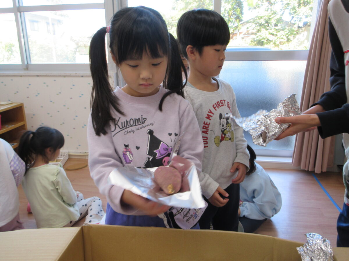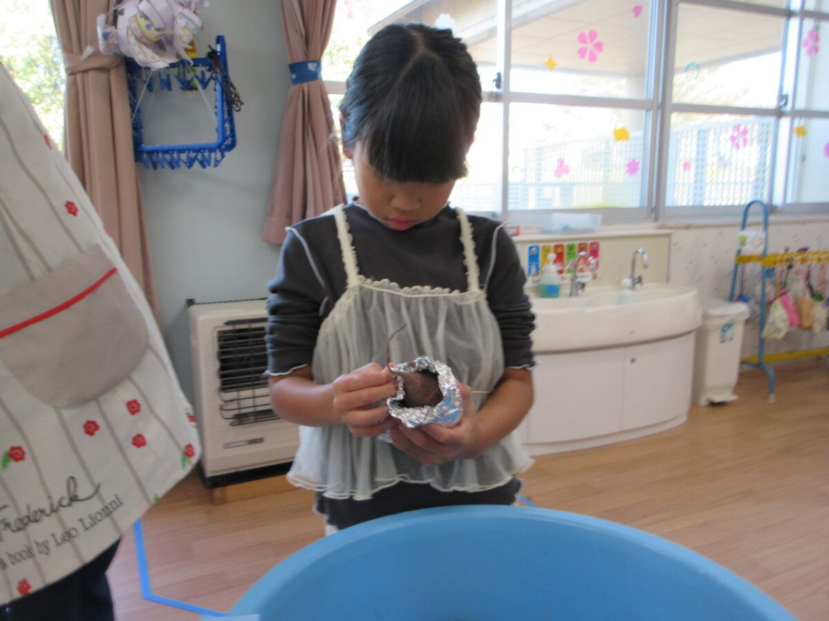 当日はアルミホイルでさつまいもを包み、良いにおいを嗅ぎながら過ごしていました。近くを通るたびに「いいにおいがする~!」と焼き上がりを楽しみにしていましたよ!