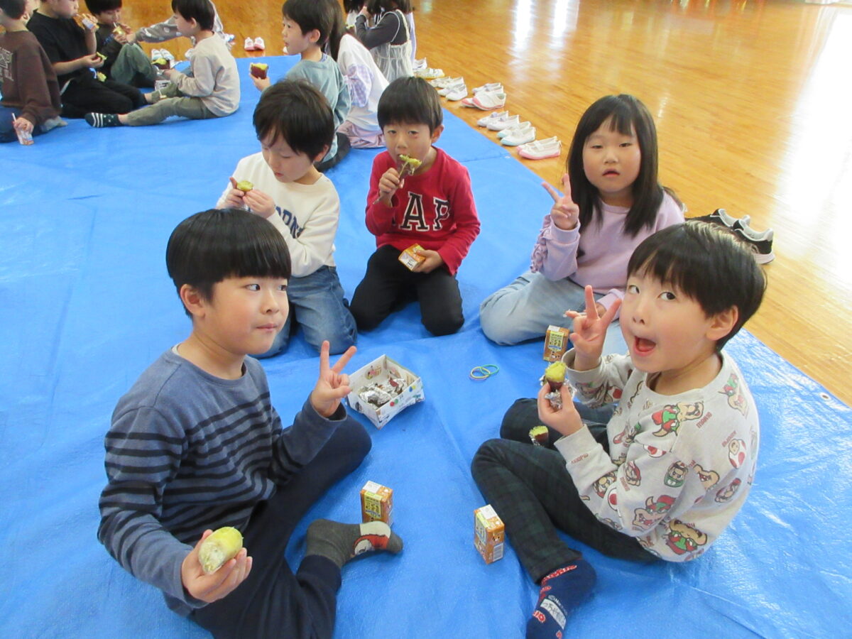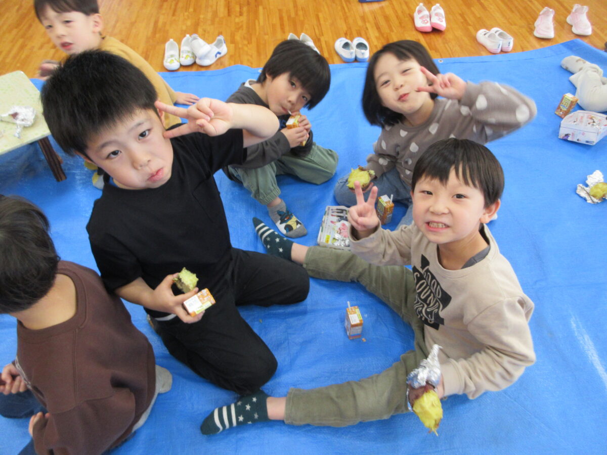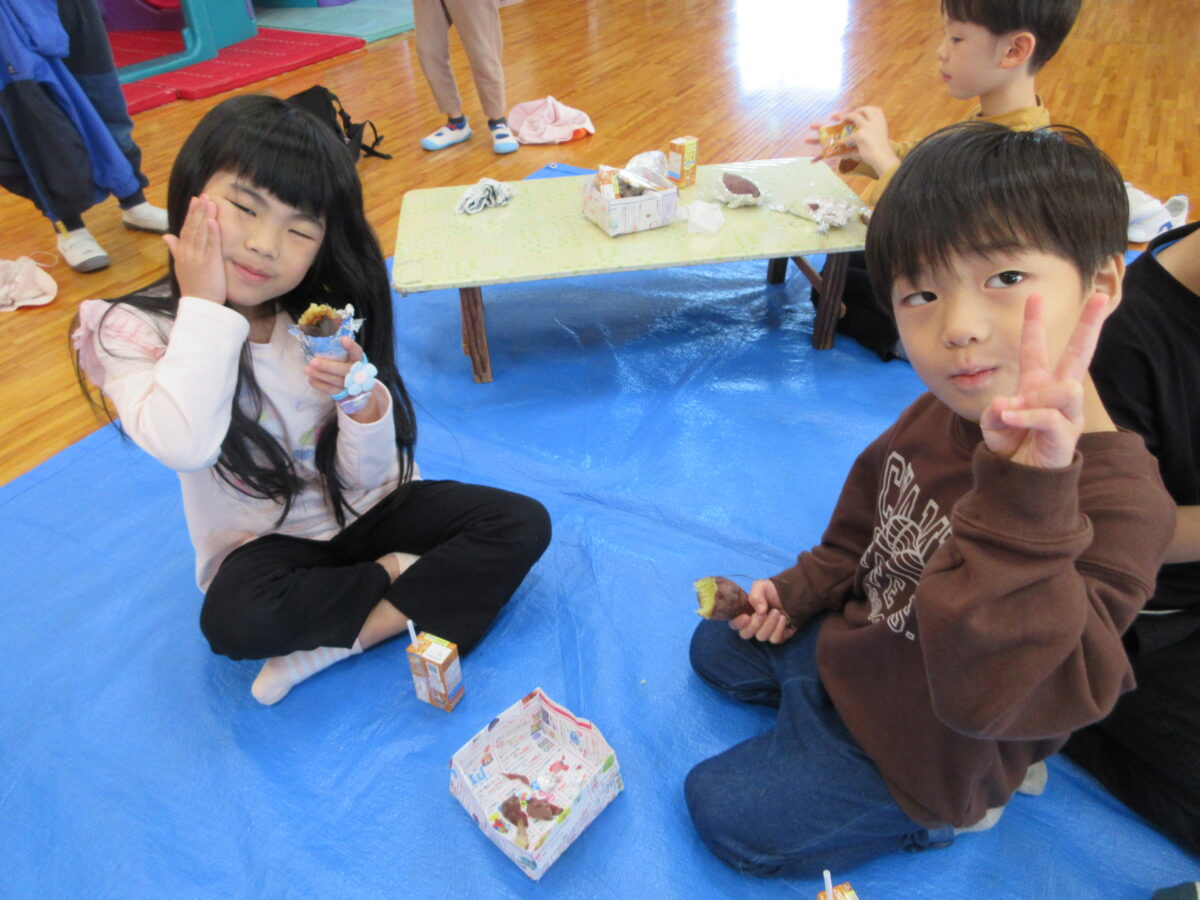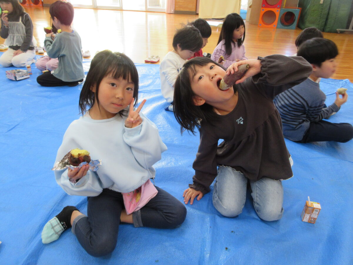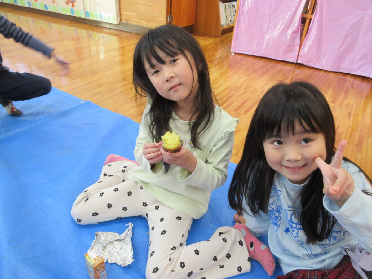 当日はアルミホイルでさつまいもを包み、良いにおいを嗅ぎながら過ごしていました。近くを通るたびに「いいにおいがする~!」と焼き上がりを楽しみにしていましたよ!
