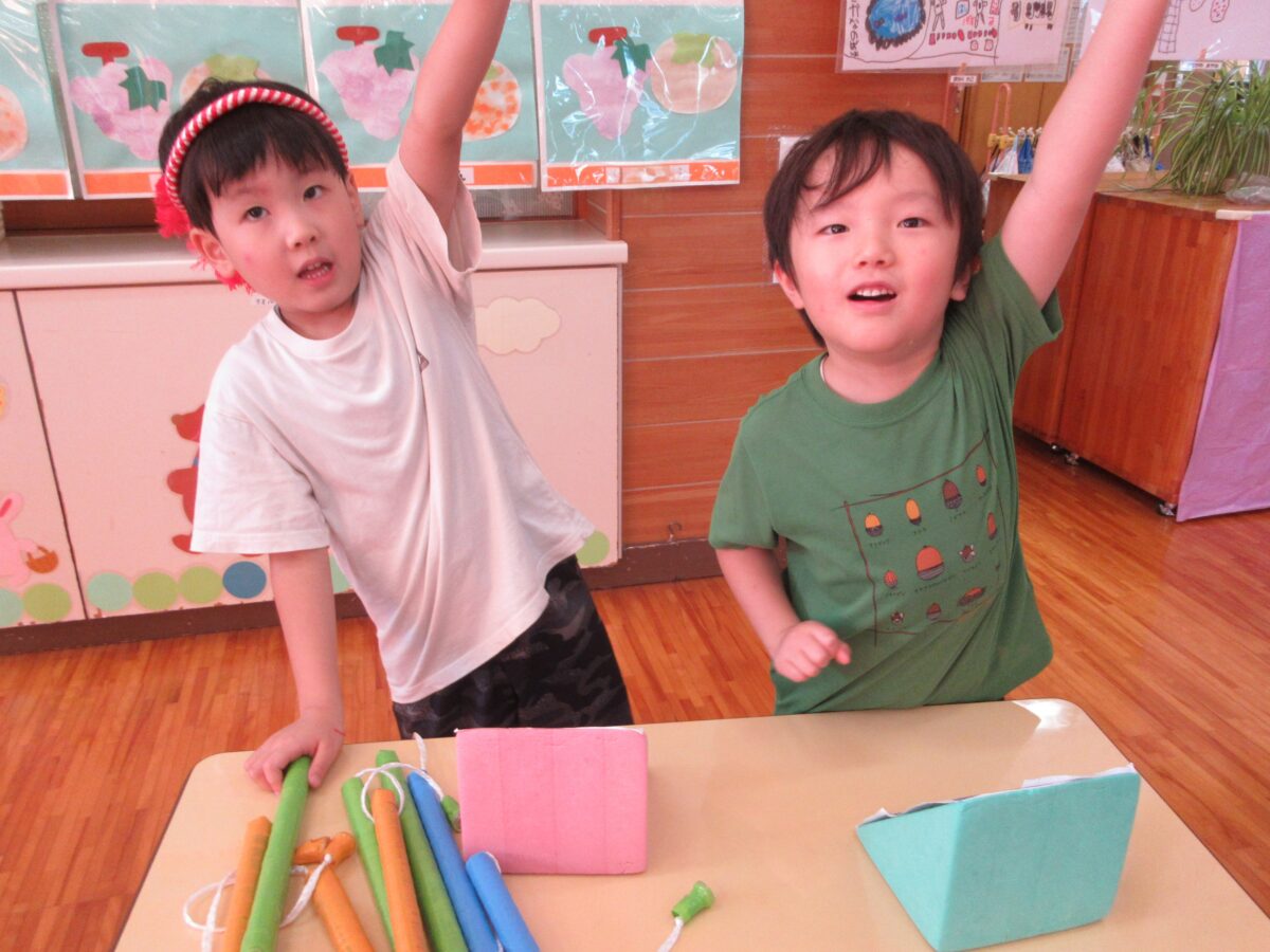 つき組は魚釣り屋さんとアクセサリー屋さんを開きました。