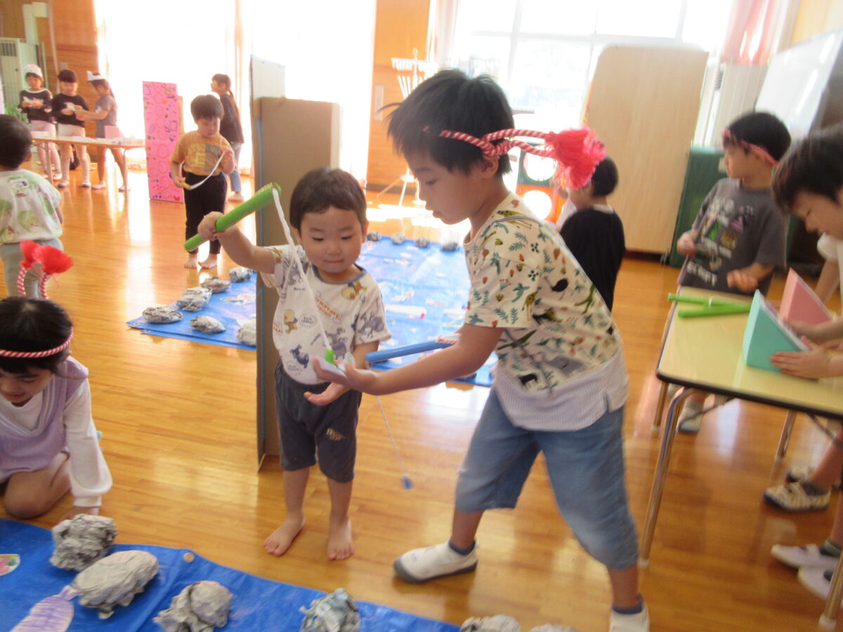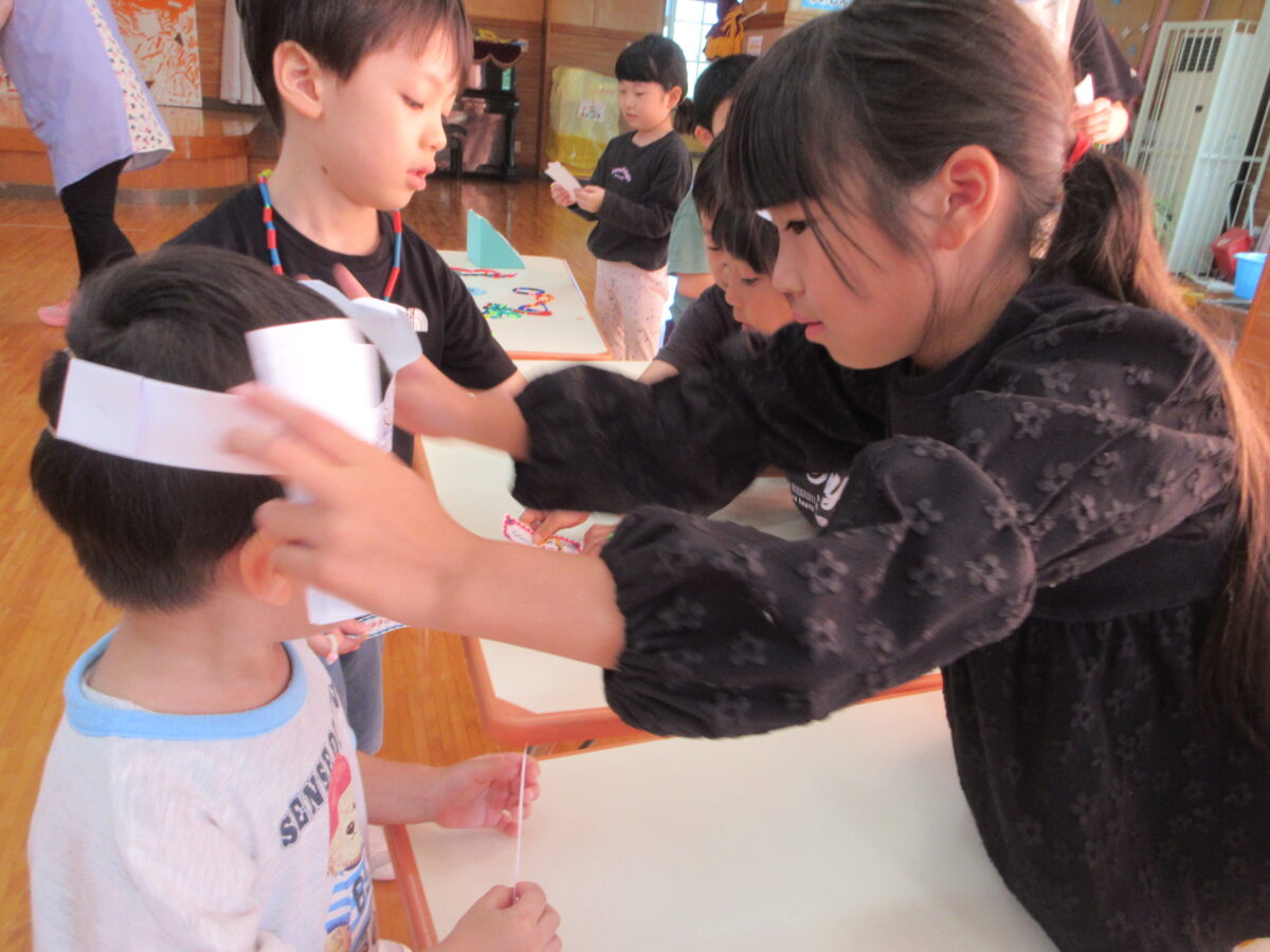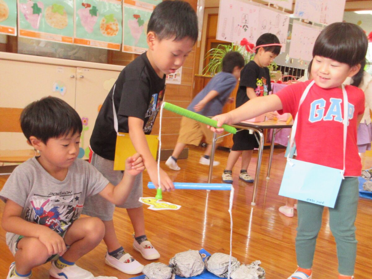 小さいクラスのお客さんには魚が釣りやすいよう近くに集めたり、「小さい子は無料でーす!」と呼び込みをしたり、アクセサリーを付けてあげたり、子どもたちなりの工夫が見られました。