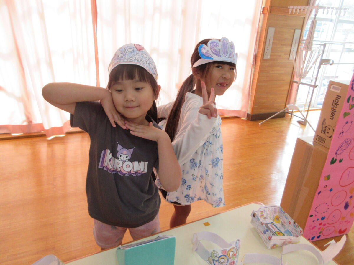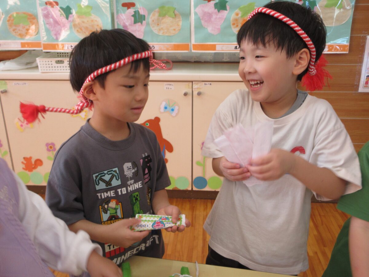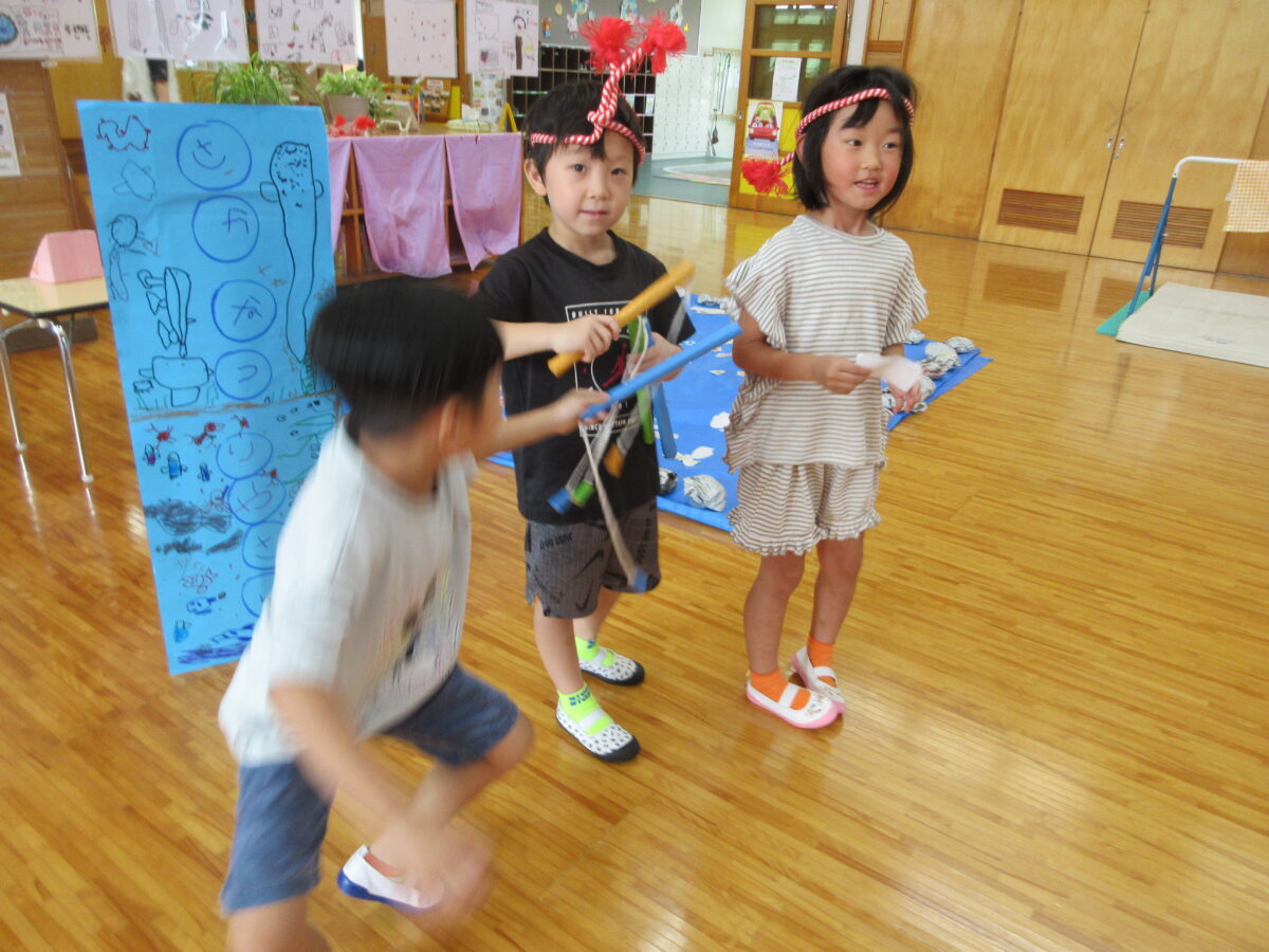 小さいクラスのお客さんには魚が釣りやすいよう近くに集めたり、「小さい子は無料でーす!」と呼び込みをしたり、アクセサリーを付けてあげたり、子どもたちなりの工夫が見られました。