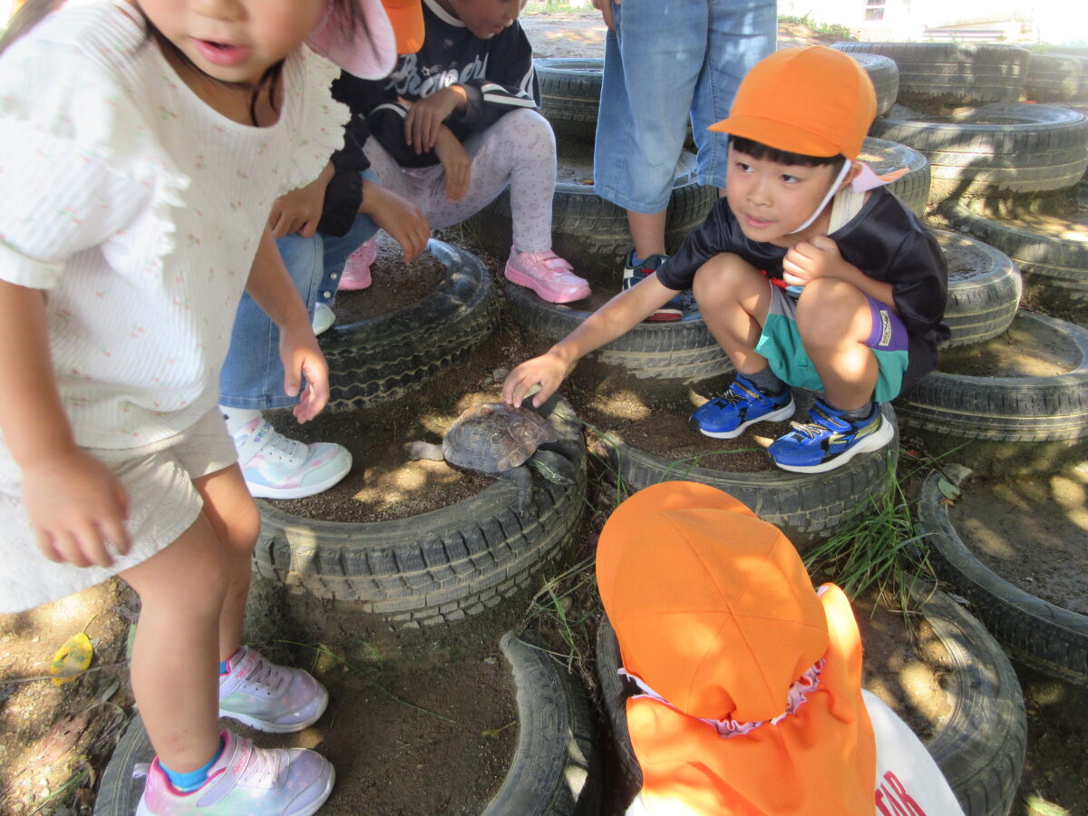 「落ちちゃう」「転がっちゃう」「助けてあげて」と子どもたちの心配する声や「頑張れ!」と応援する声と様々でしたが心配をよそにどんどん進み「ゴトン」と音を立てながら階段を下りました。「ぺろちゃんすごい!」と子どもたちが自然と拍手をしていました。