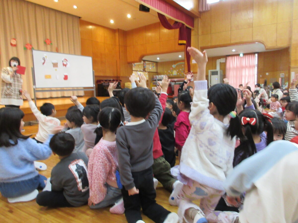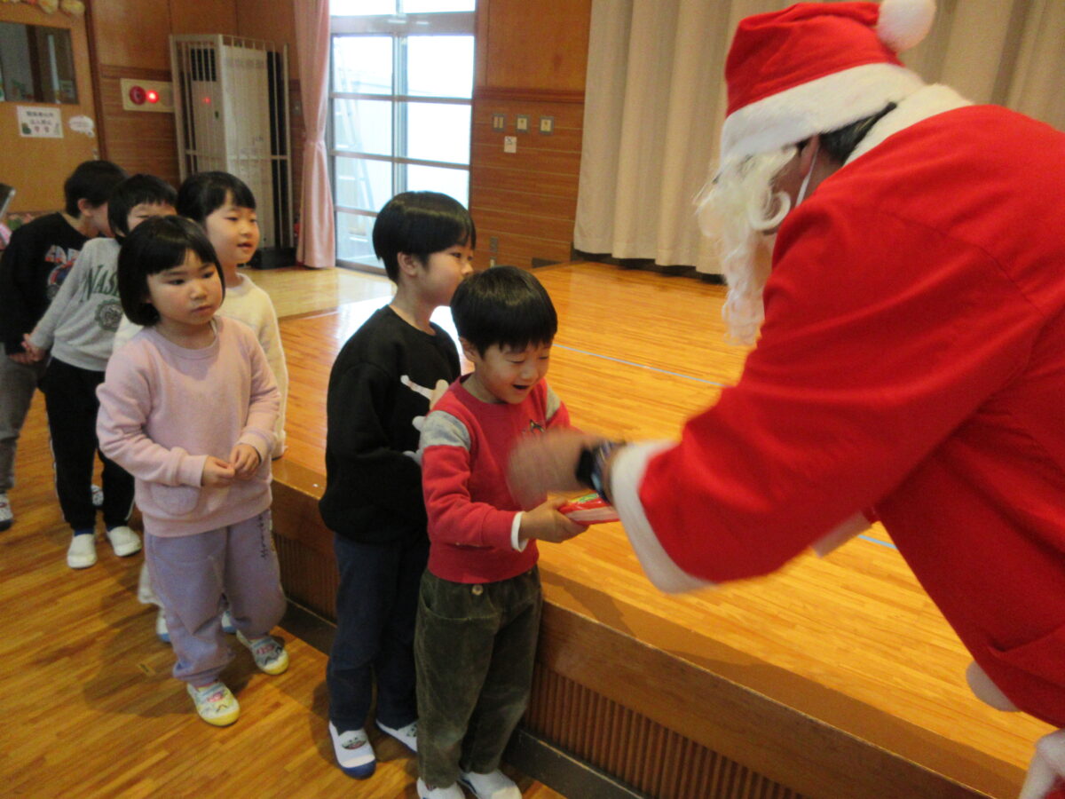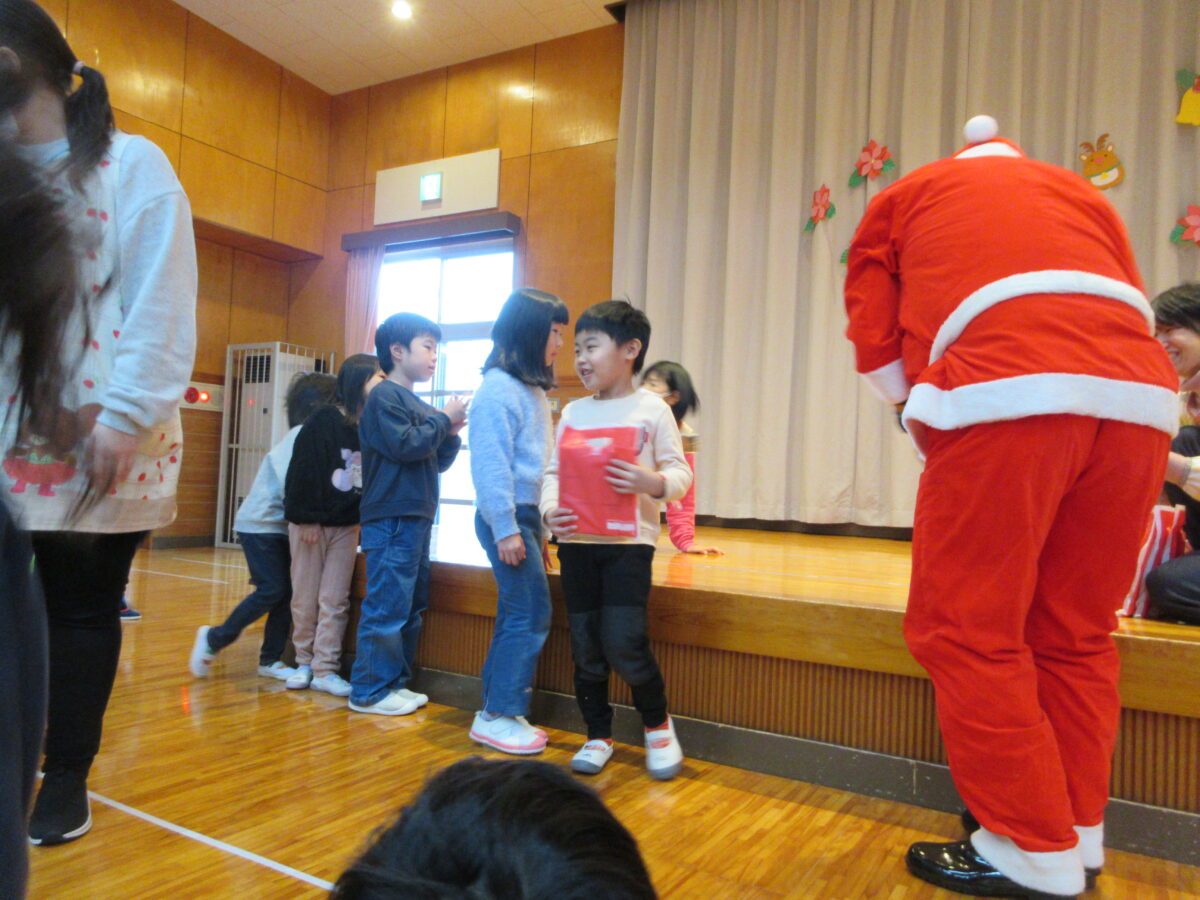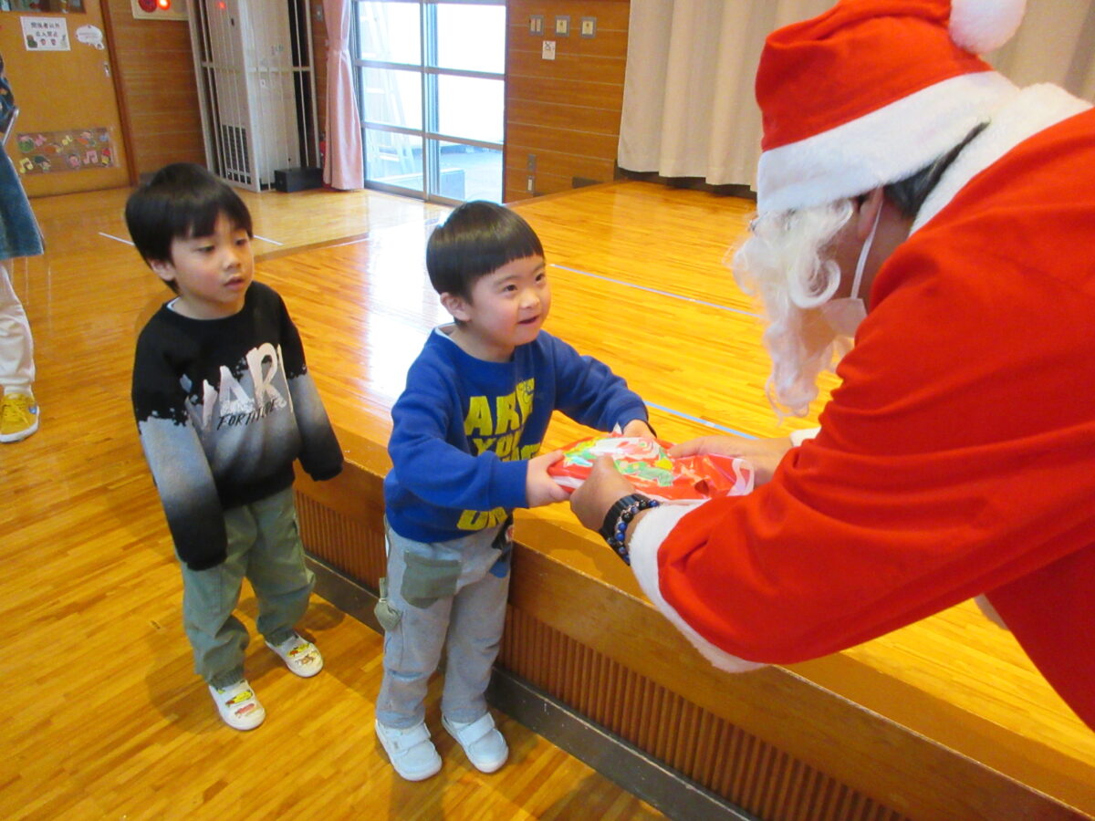 クイズにも積極的に参加し手をあげたり、鈴の音が遊戯室に響き渡ると周りを見渡しドキドキが止まらない様子でした。サンタさんの登場に大興奮しながらもプレゼントをもらったお礼をしっかり伝えていた子どもたちでした。