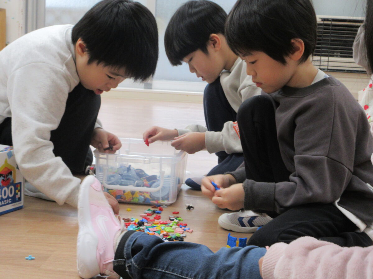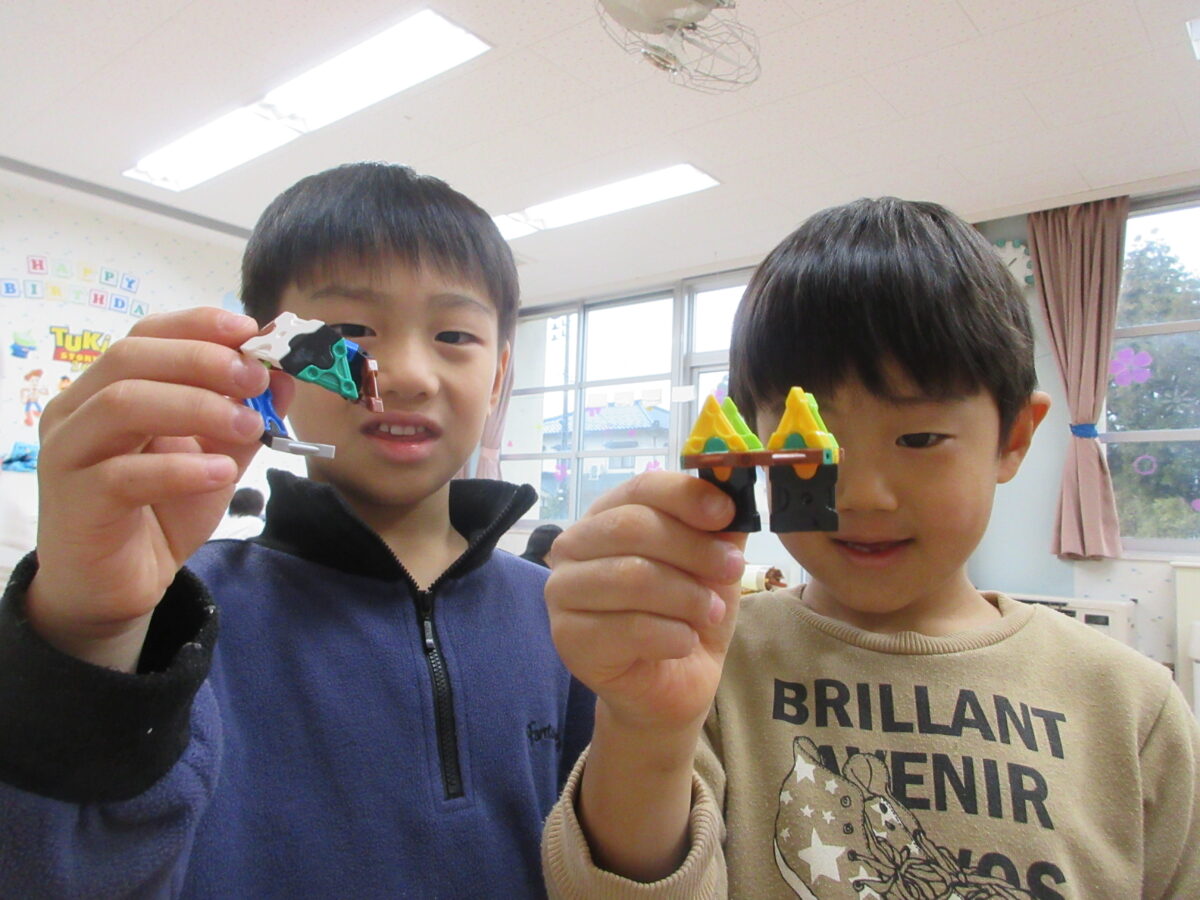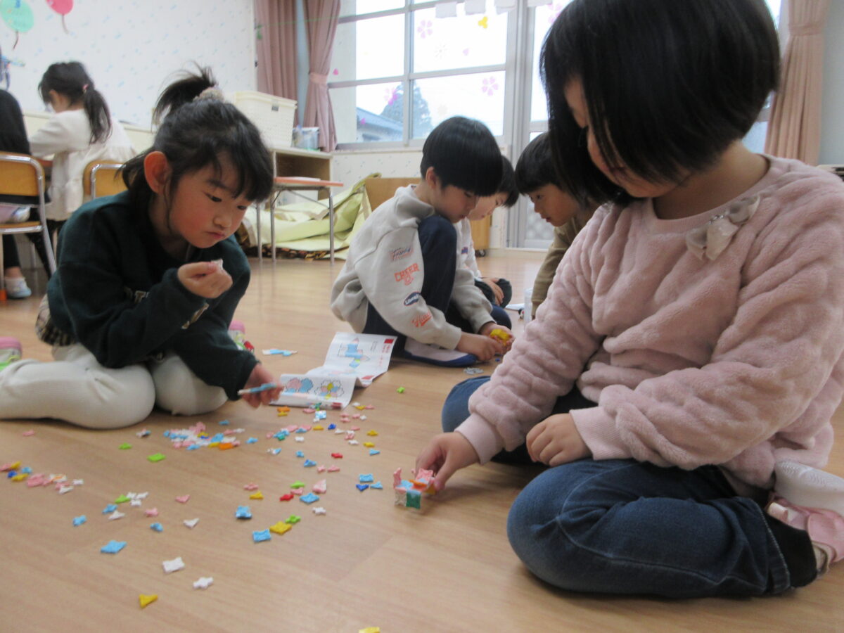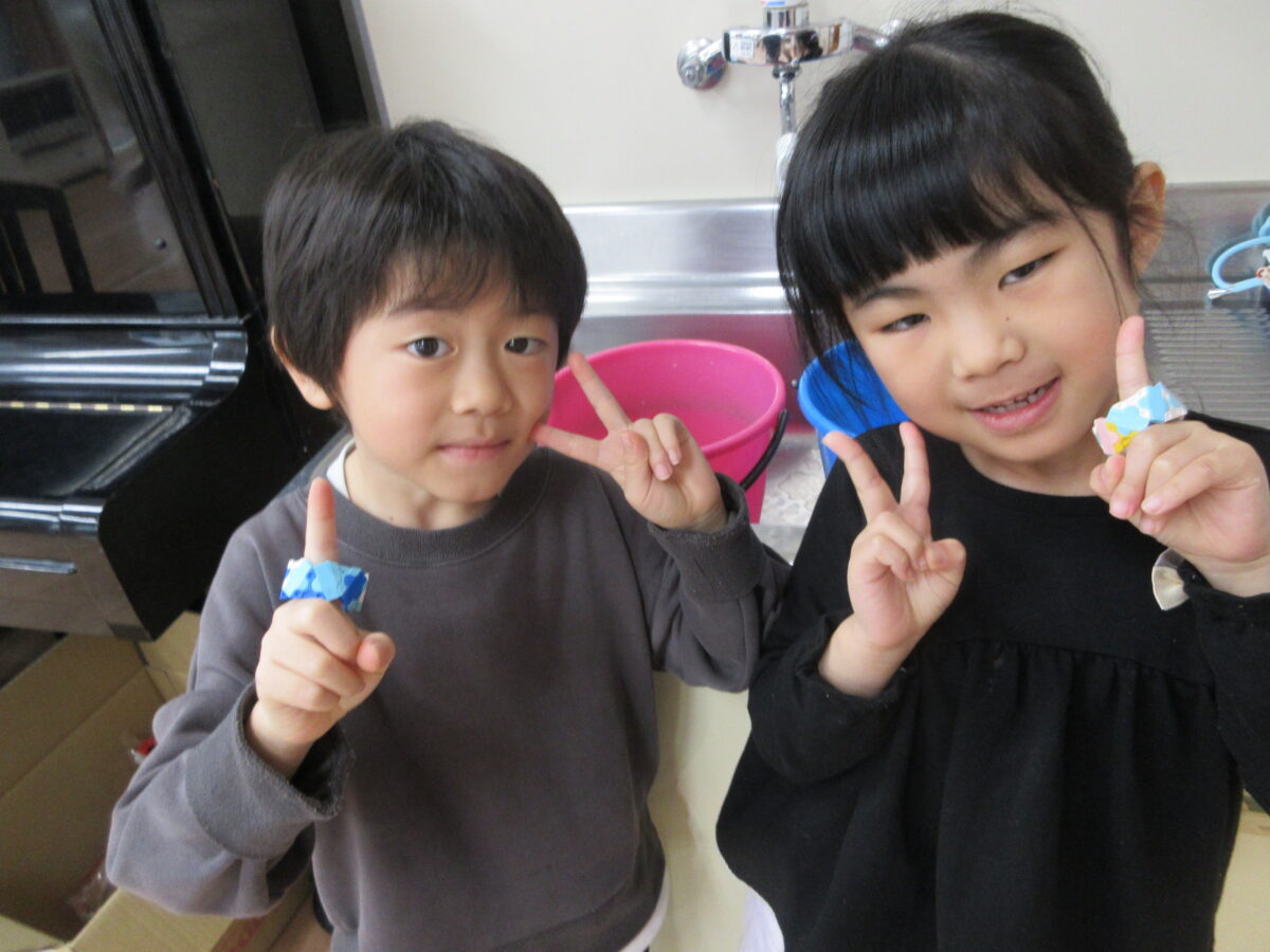 作り方の図を順番に見ながら指輪や車、エイなど好きな物を作っていました。