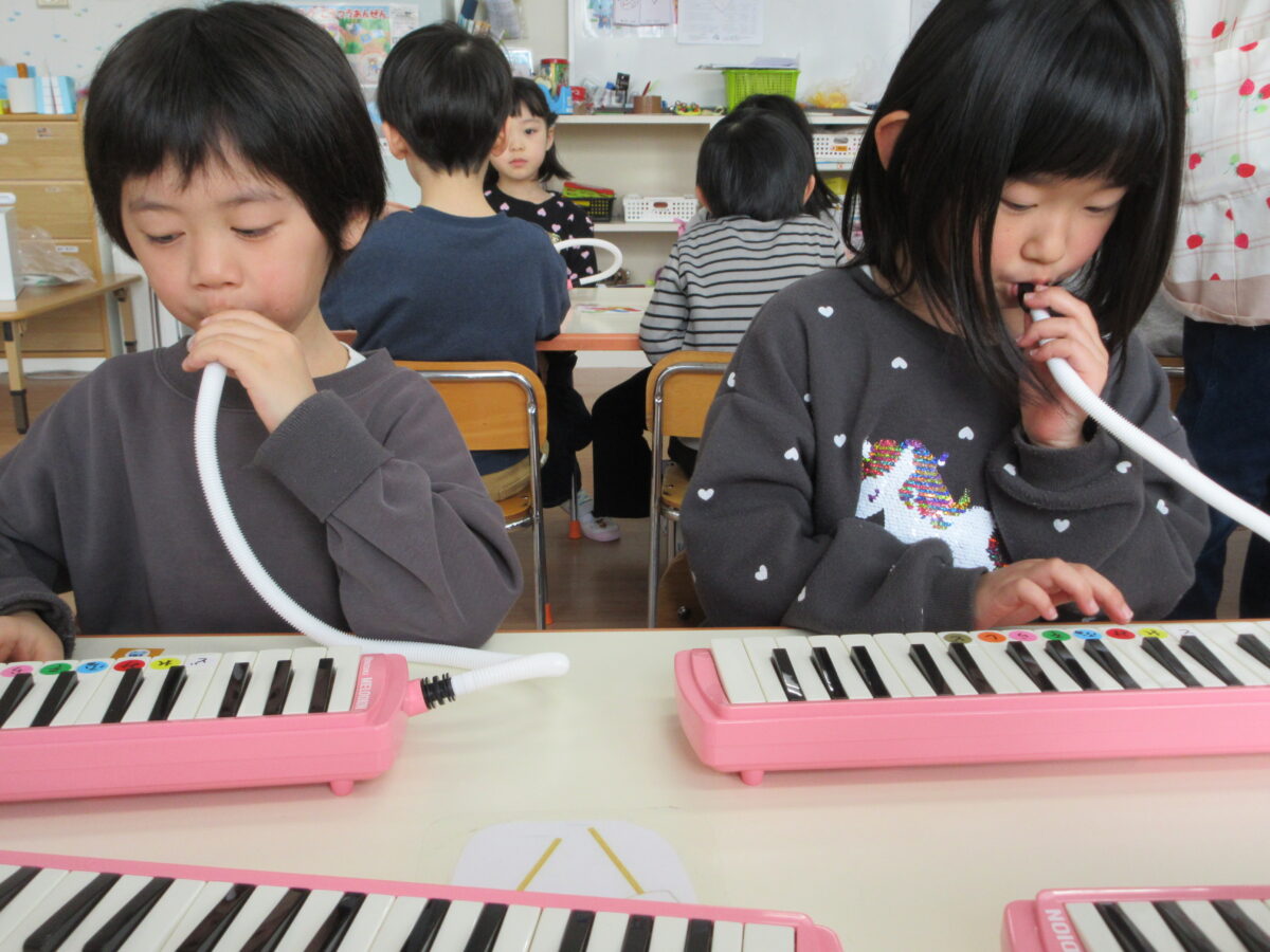 メロディオンを始めました。まず最初は歌口の使い方や指の場所を覚えるところからスタートしました。そして、どんな音が鳴るか自由に鳴らし試してみました。