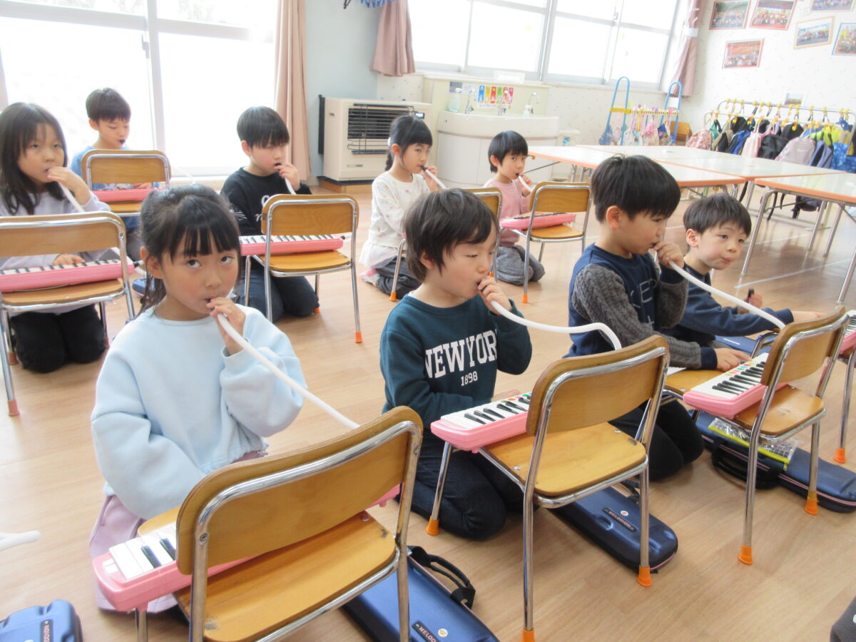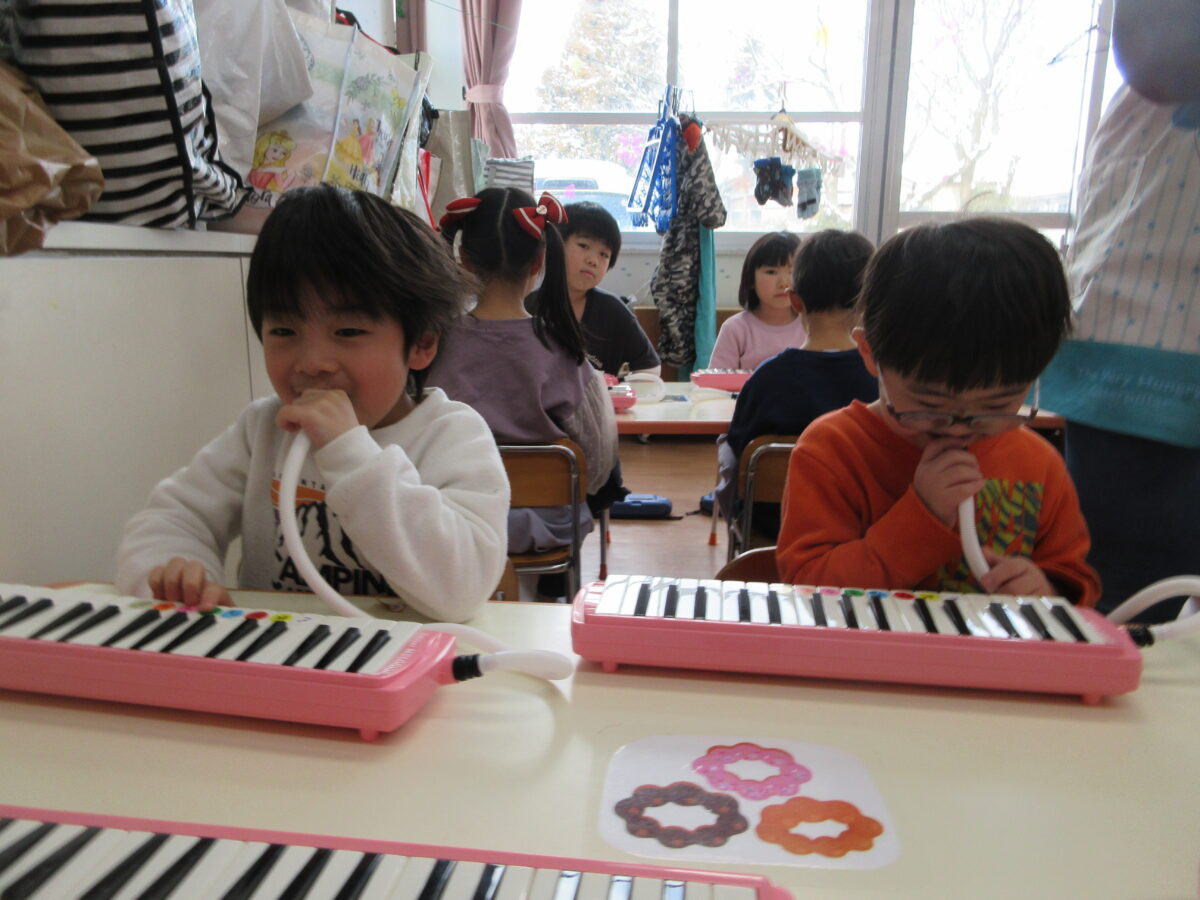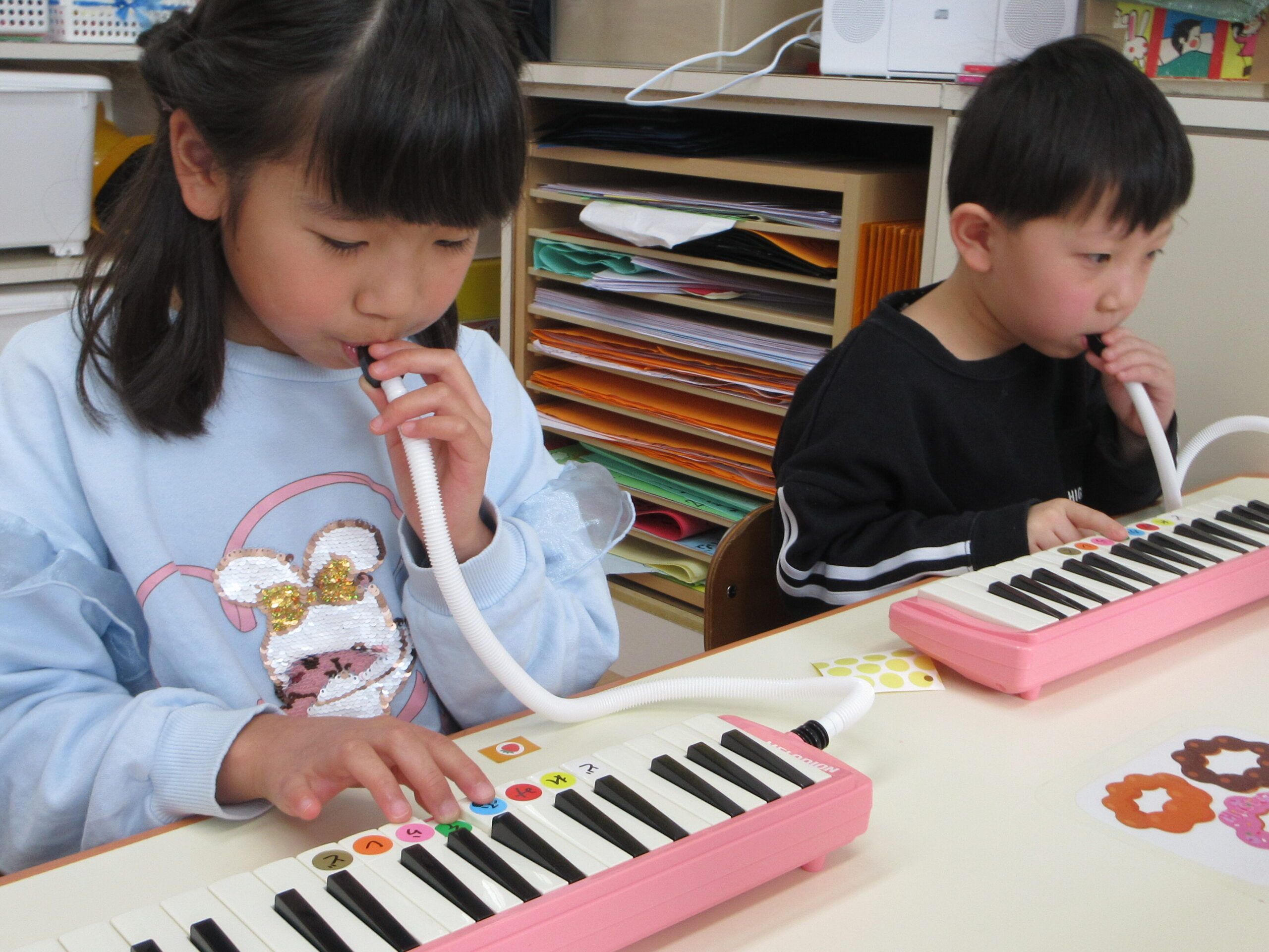 その後は、ドレミファソラシドをみんなで弾いてみました。お友達と指の場所を教え合ったり、弾けるととても嬉しそうな表情を見せてくれました。