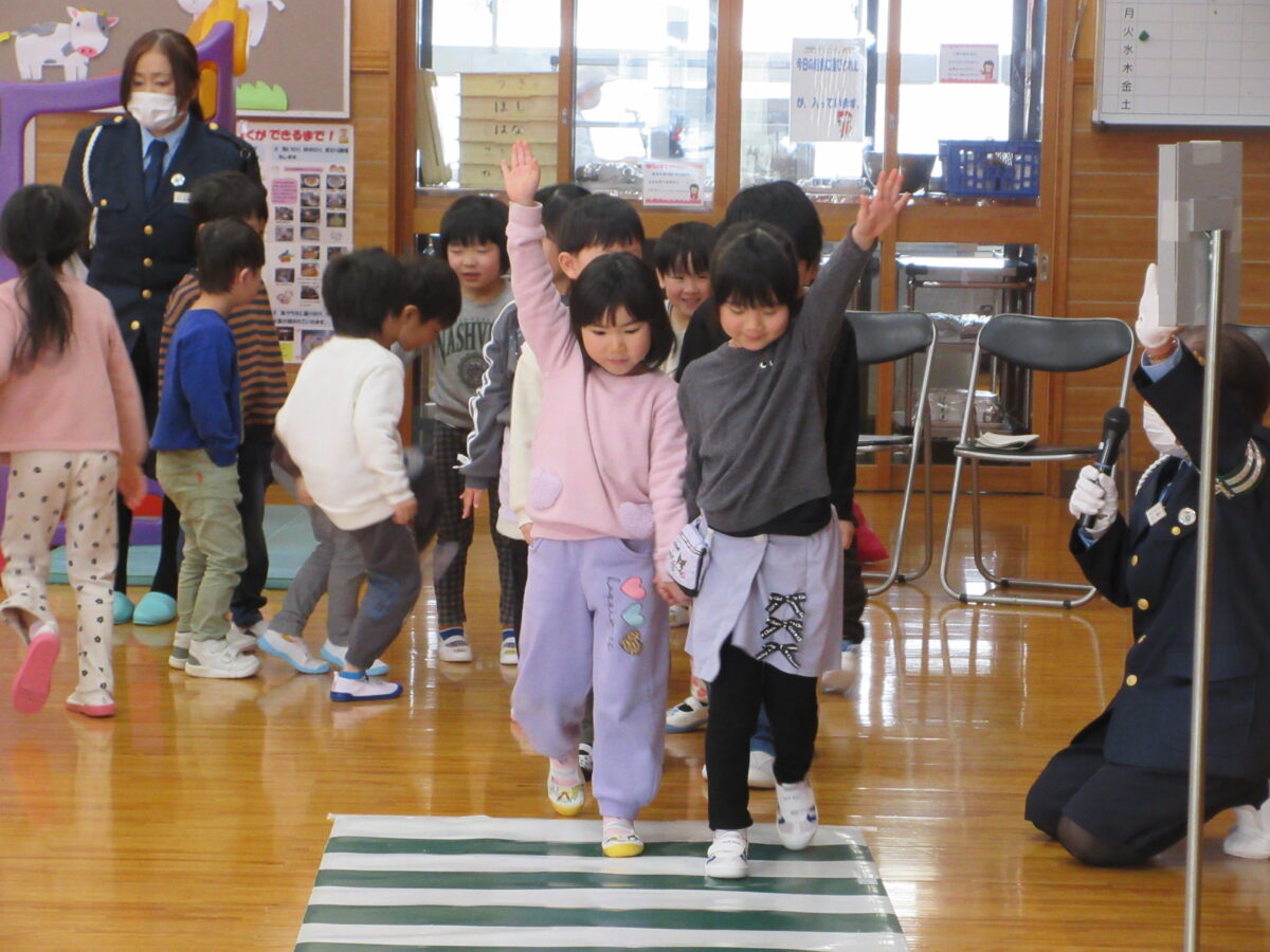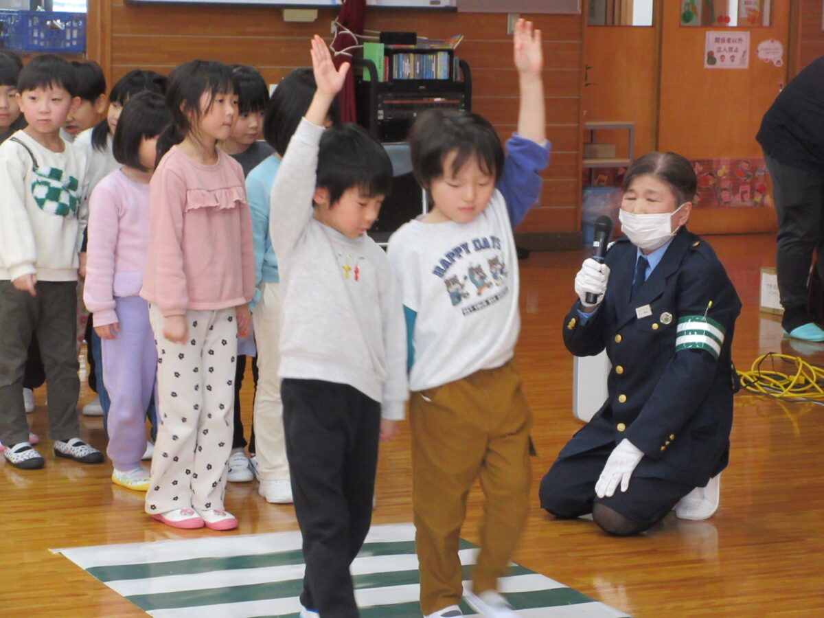 阿賀野市の交通安全教室があり、交通安全のDVDを見たり、踊ったり、横断歩道を渡る経験をしました。