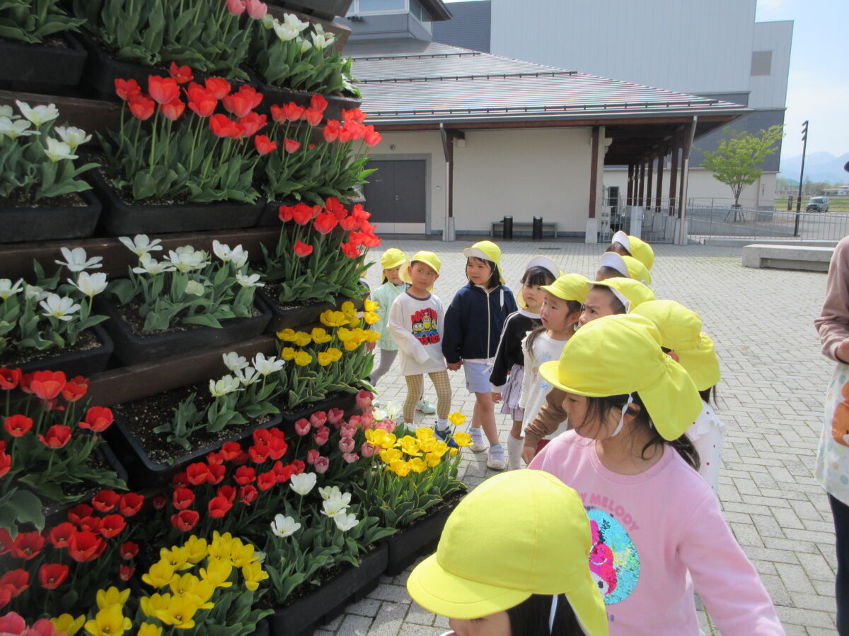 水曜日はラポルテ五泉へチューリップを見に行ってきました。壁一面チューリップが咲いていて、