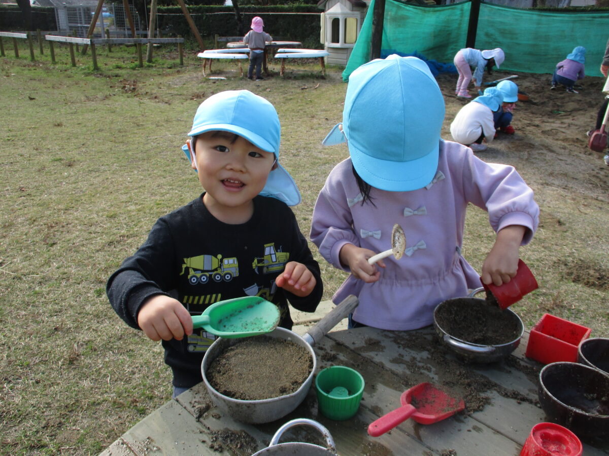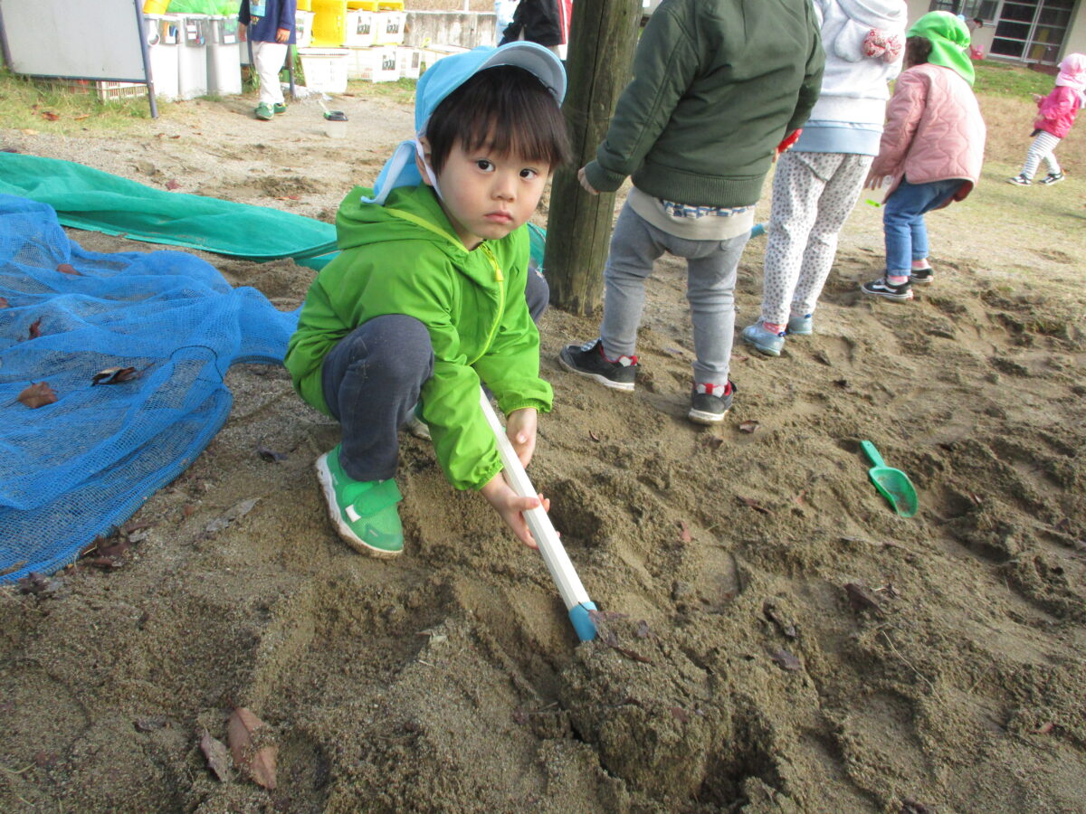 虫があまり見られなくなり、捕まえられない子ども達は寂しそうです…。「幼虫いないかな?」と夢中で土を掘って探していました。