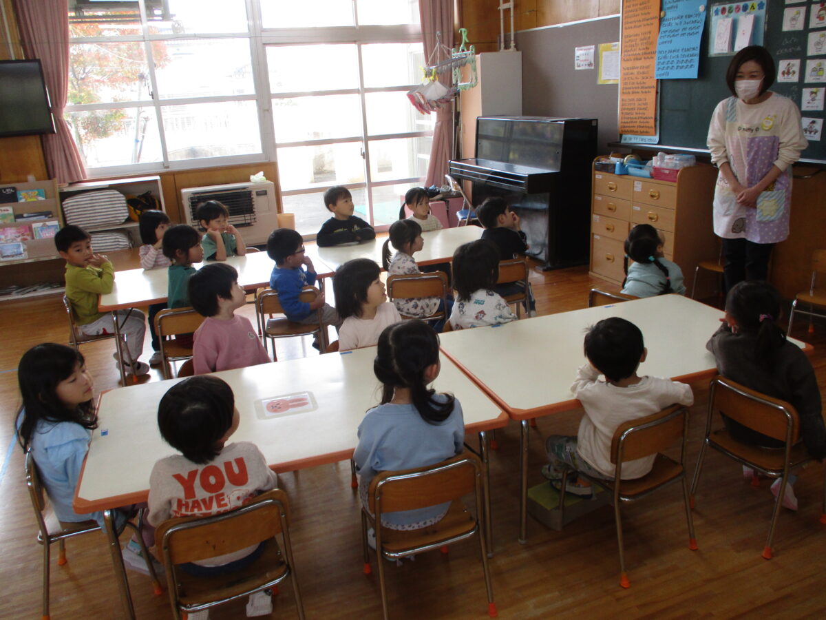 園長先生から、七五三のお話を聞きました。興味を持ってよく聞いていましたよ。