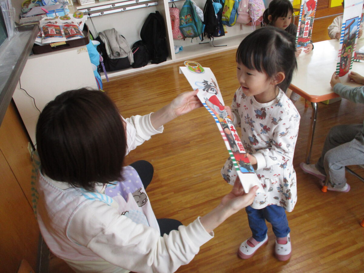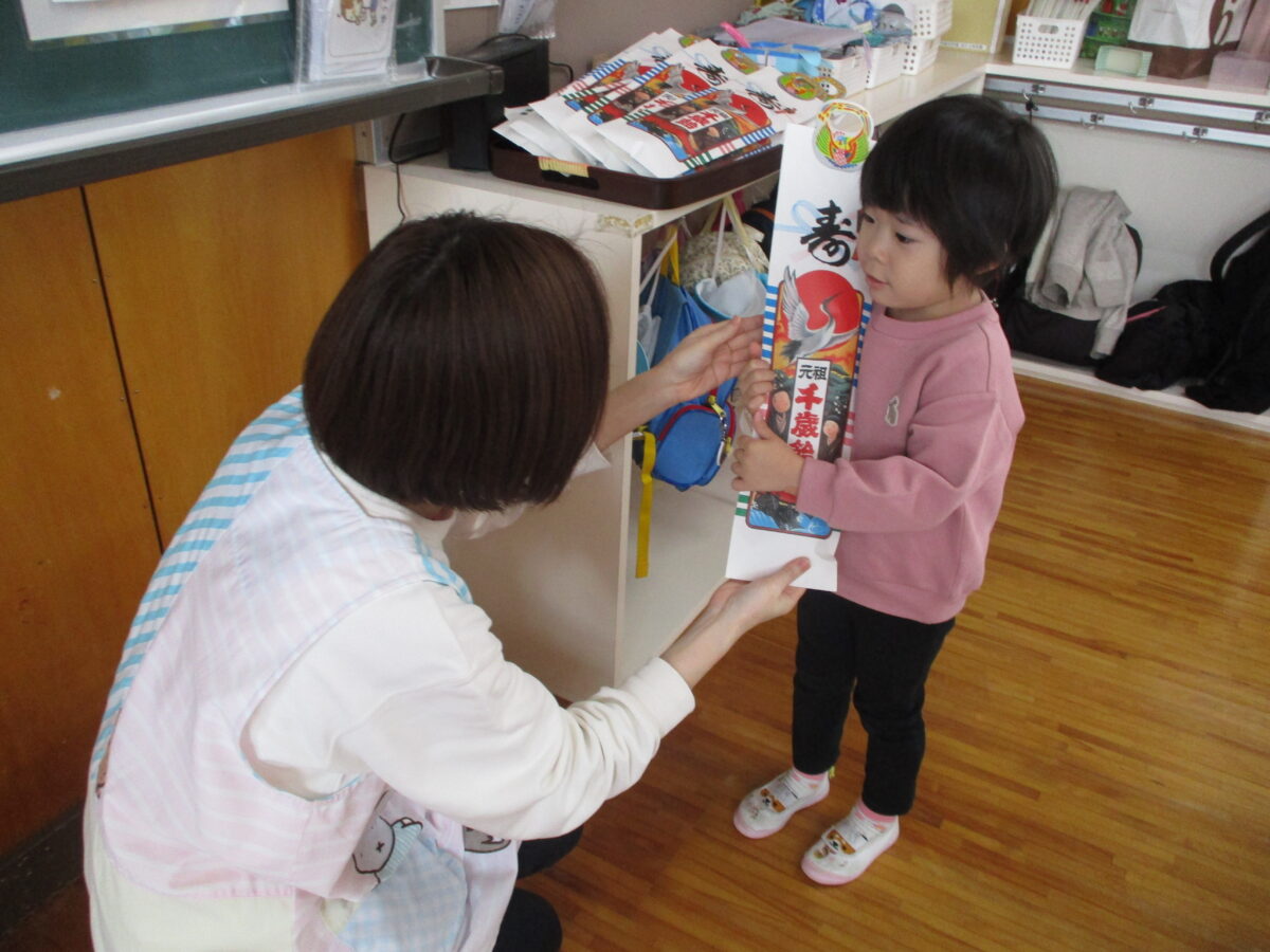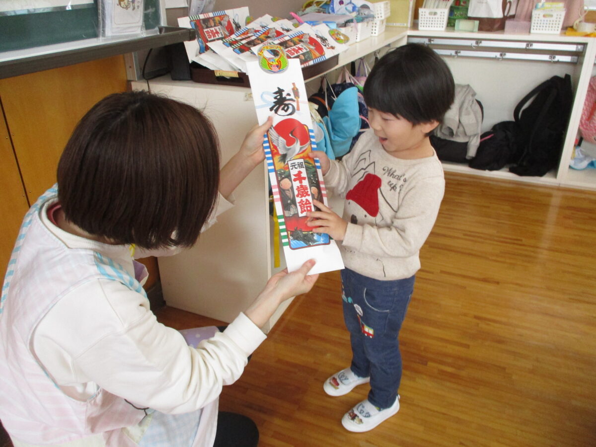 一人ひとりに千歳飴をいただきました。子ども達はとても嬉しそうでした!