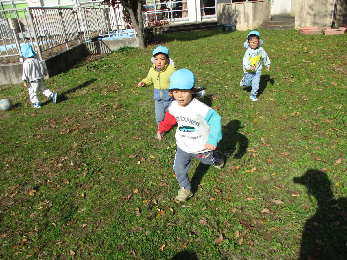 久しぶりの園庭遊び!開放的になり、たくさん走ったり思い思いの遊びを楽しみました。