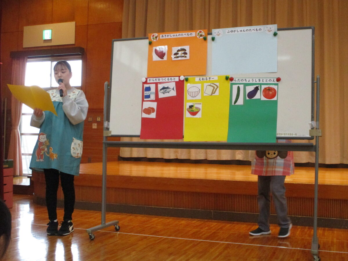 今日は食育の日ということで、三大栄養素についてのお話を聞きました。