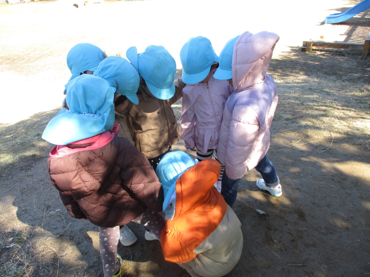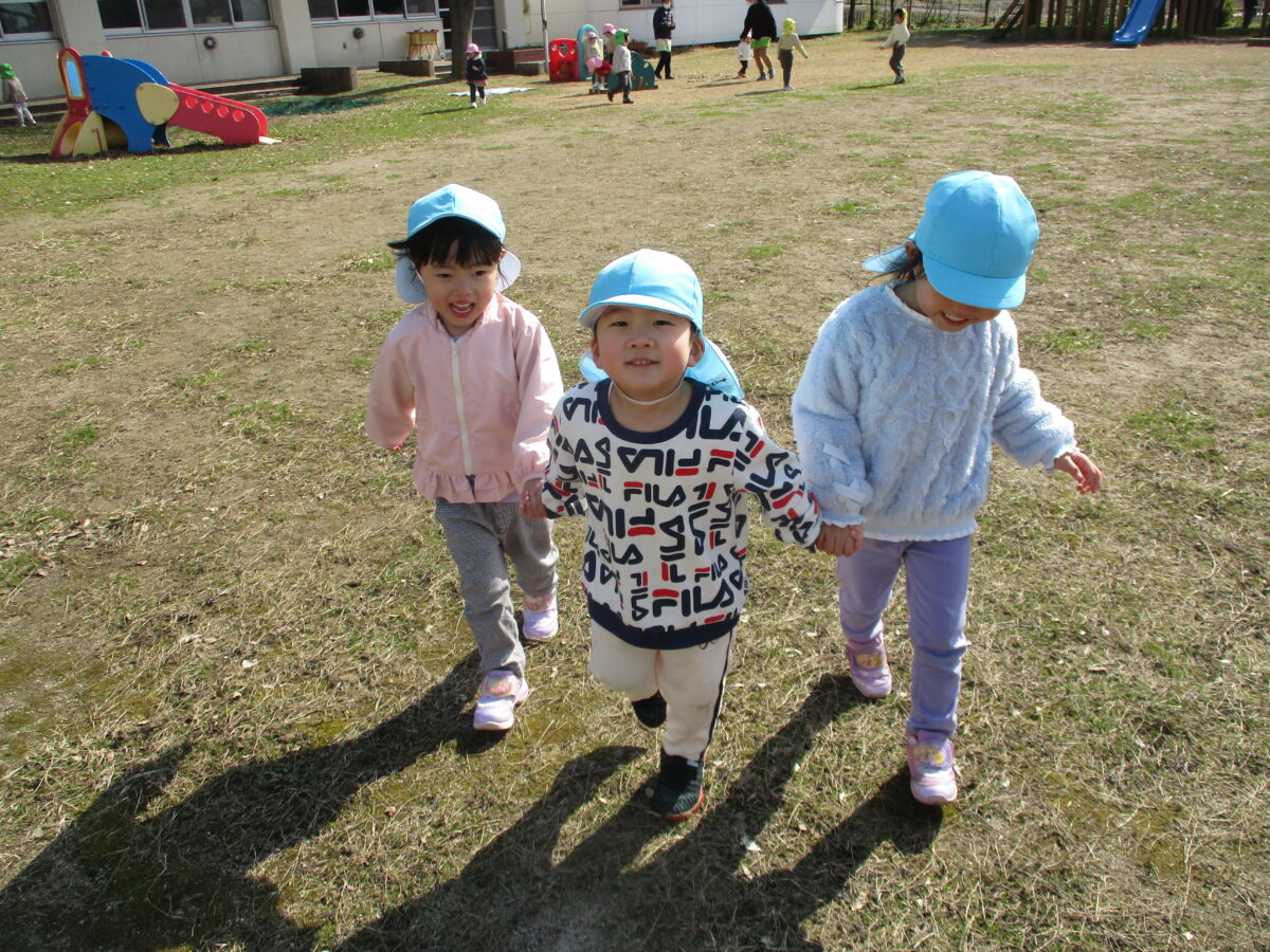 園庭では毎回鬼ごっこが繰り広げられています。足を使っての鬼決めも上手に決められるようになりました。