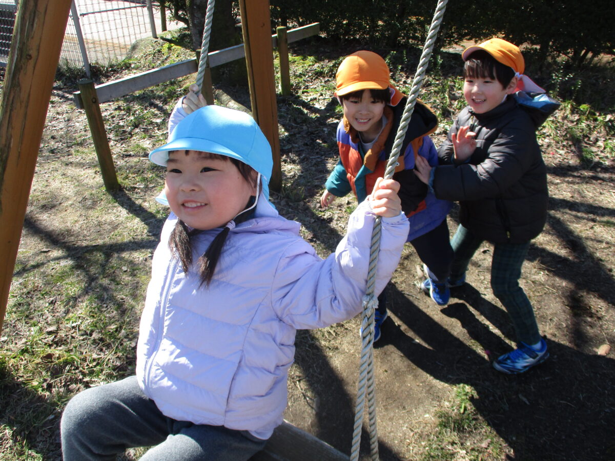 ブランコに乗ると「押して~!」と元気な声が聞こえてきます。それを聞いた優しいつき組さんが押してくれる場面もありました。