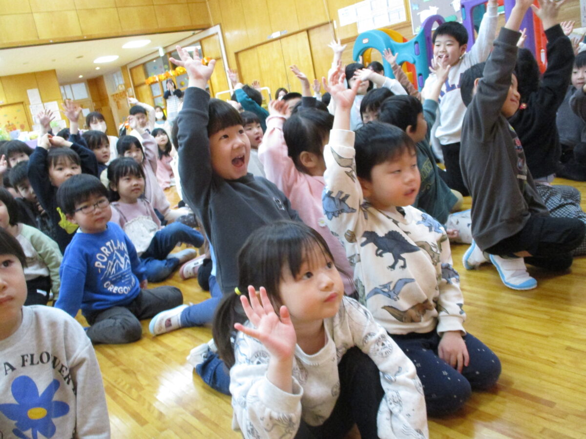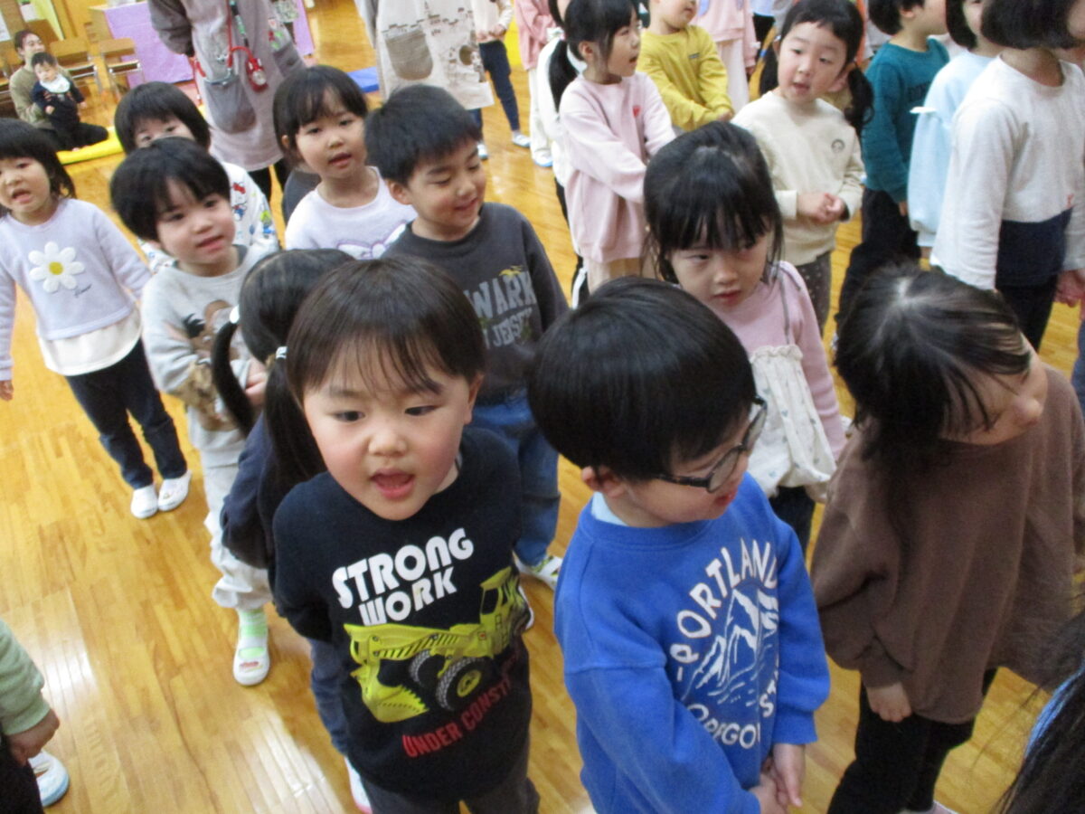 ひなまつりの歌が子ども達は大好きで、難しい歌詞を最後まで上手に歌えるようになり、本番も自信満々に歌ってくれました♪
