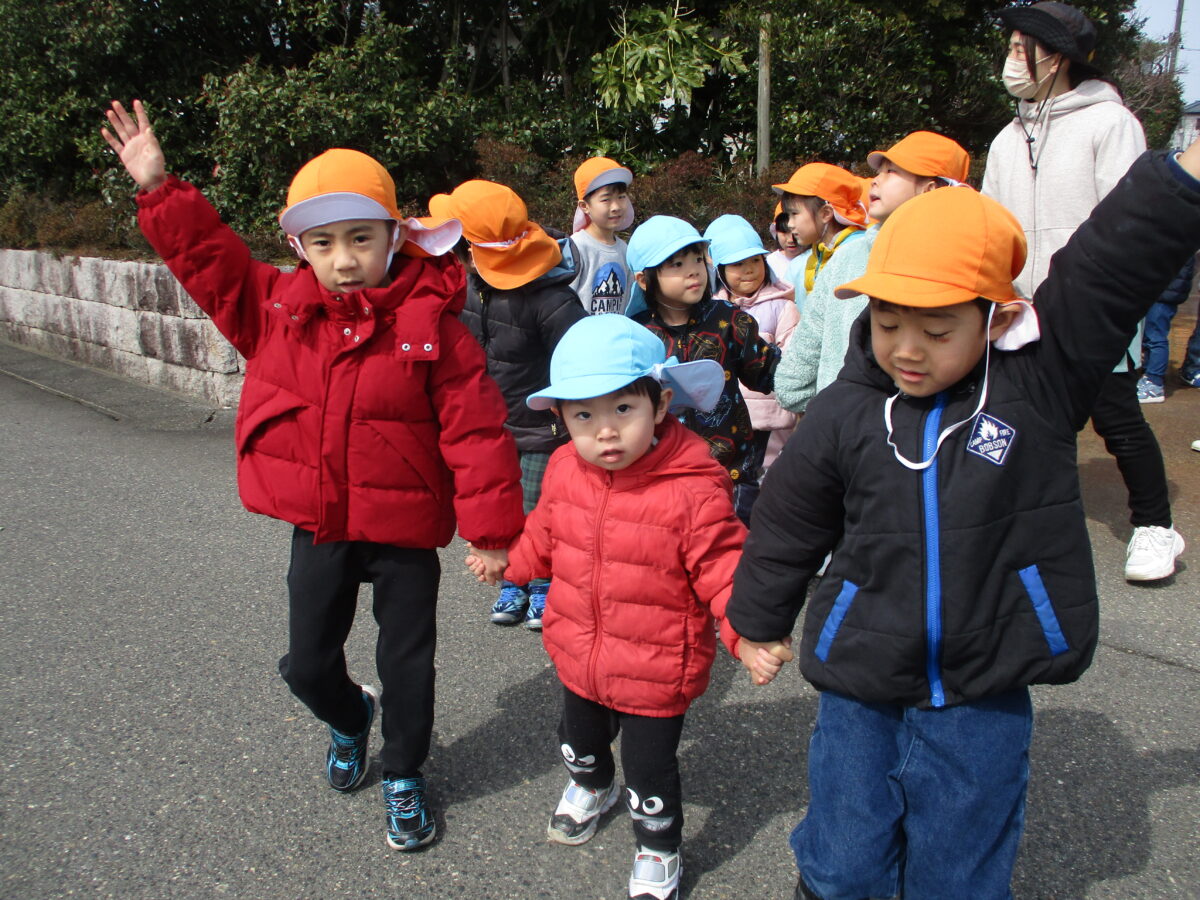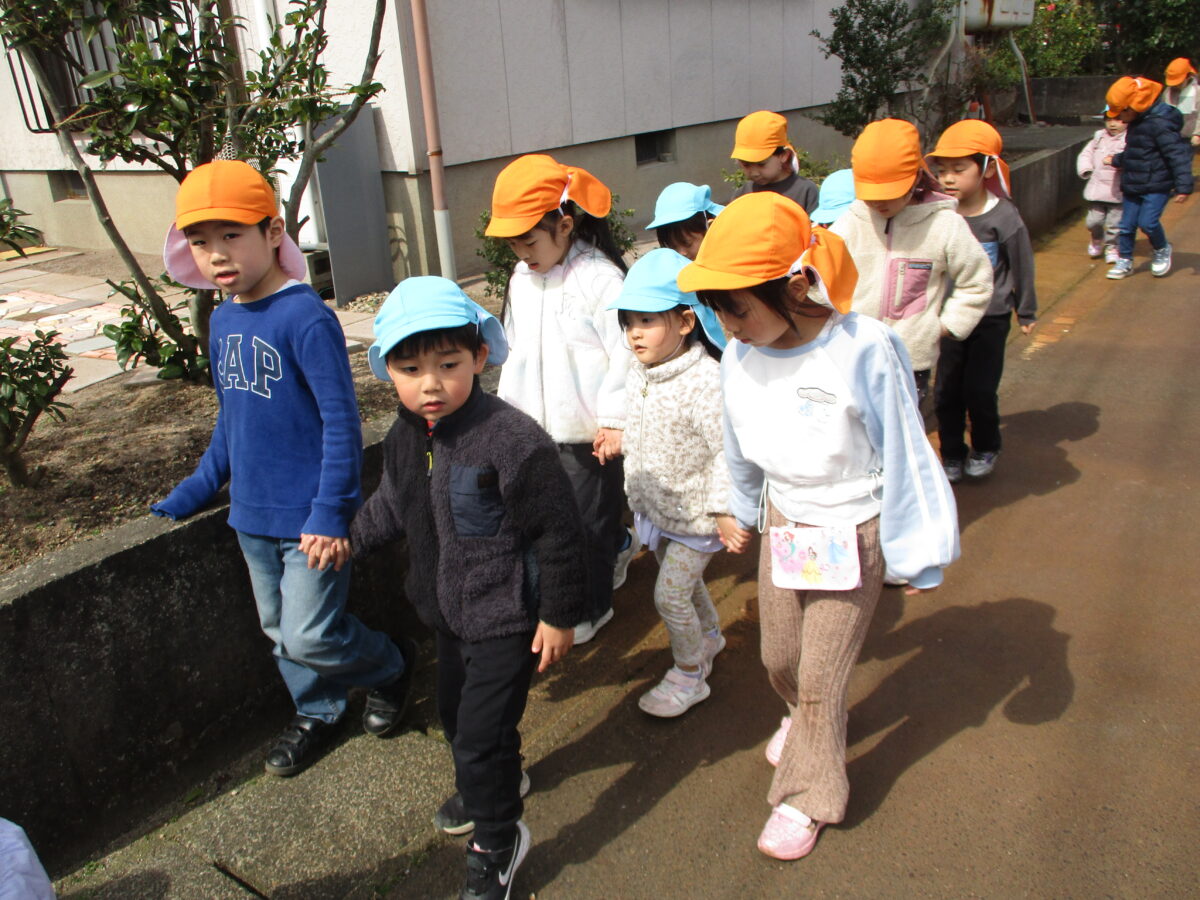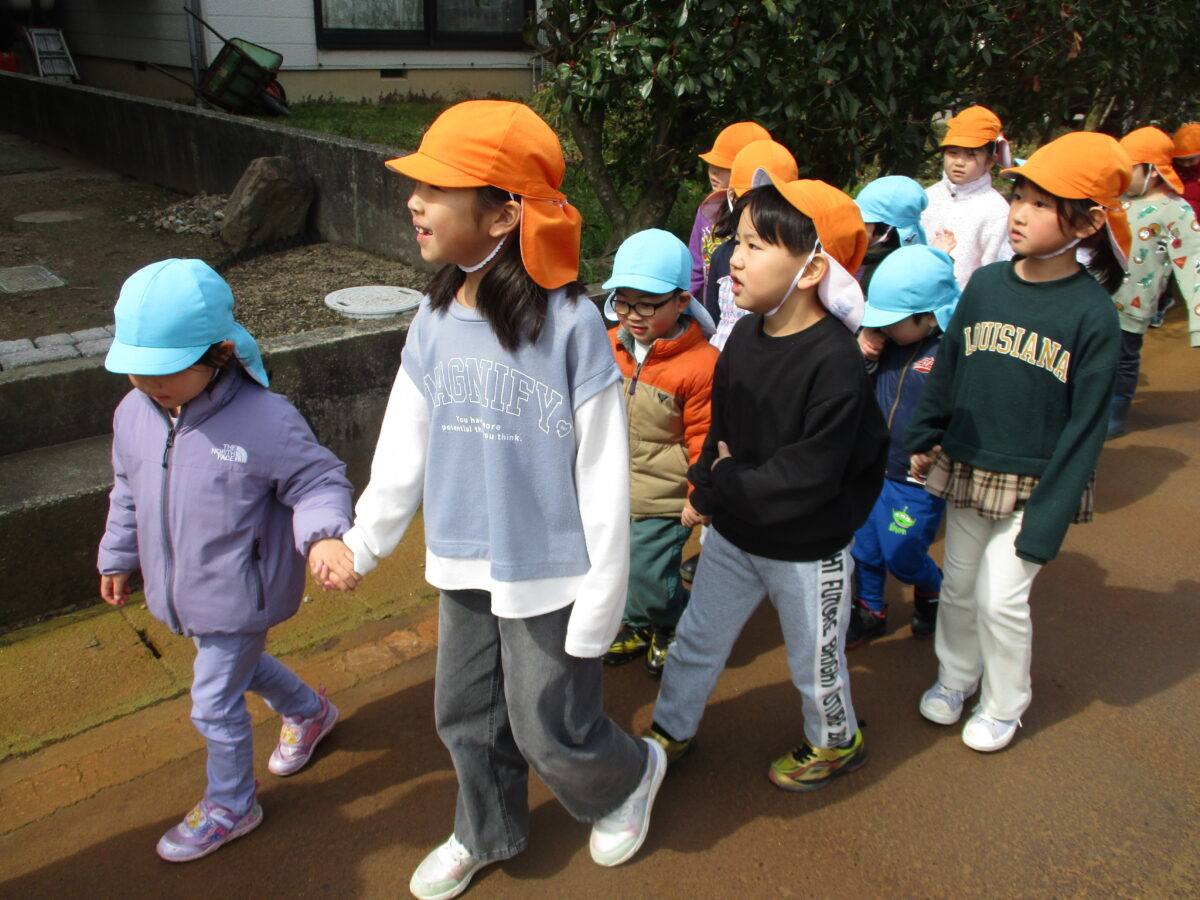 つき組さんとお散歩に行きました。手をつないでもらって嬉しそうにしている子ども達でした。