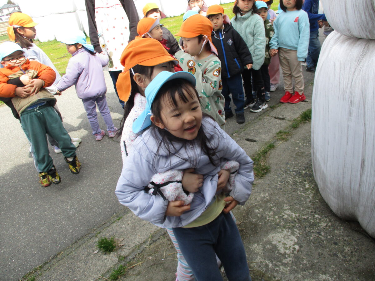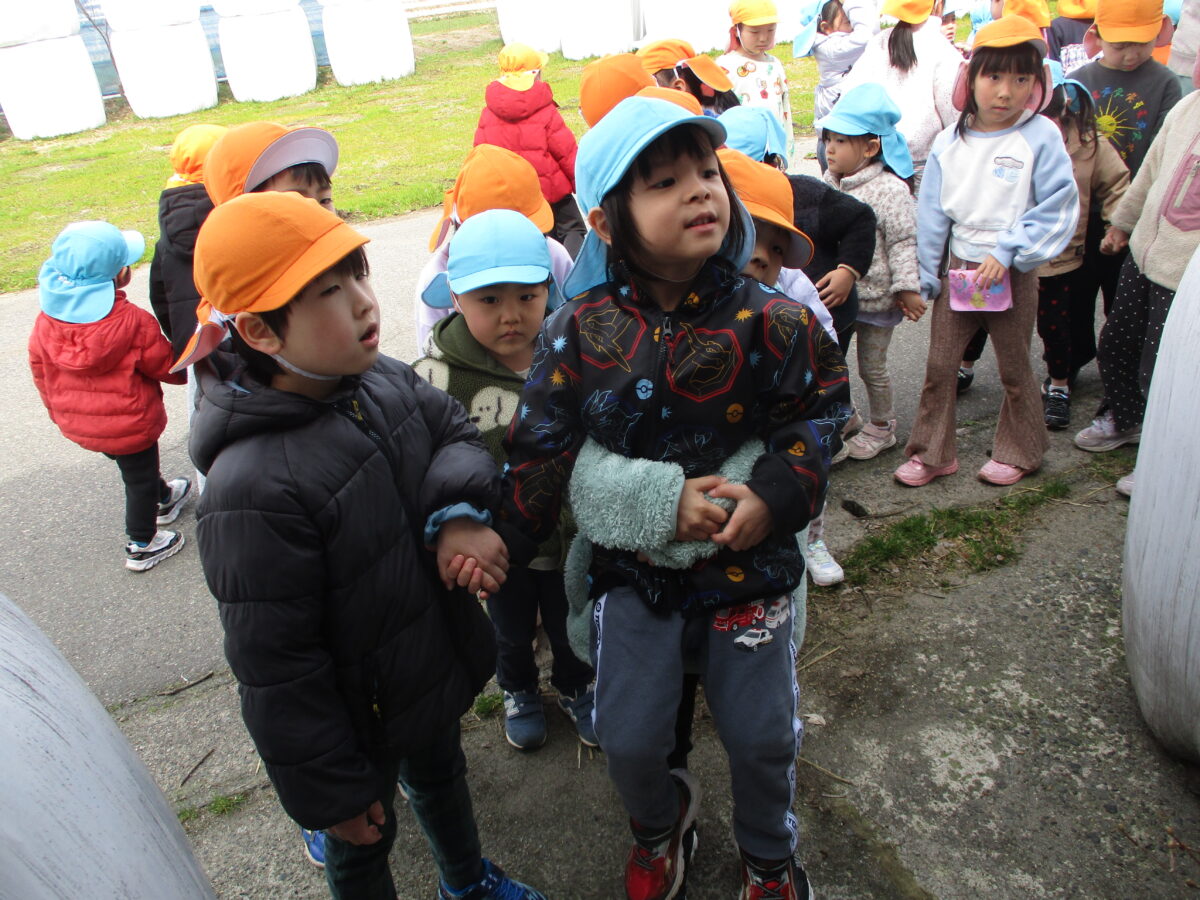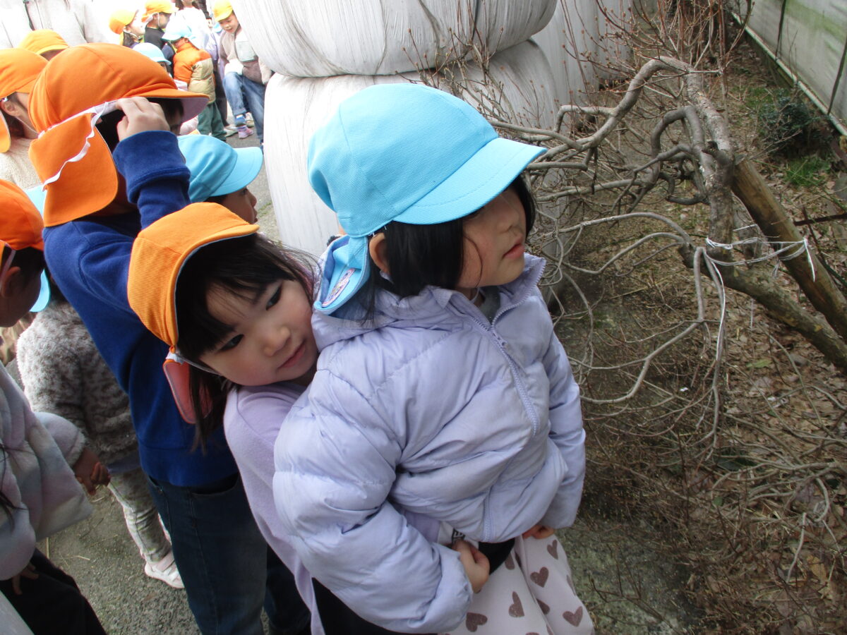 牛舎に着くと、牛さんが見えるようにつき組さんが抱っこをして見せてくれていました。さすがお兄さん、お姉さんですね!