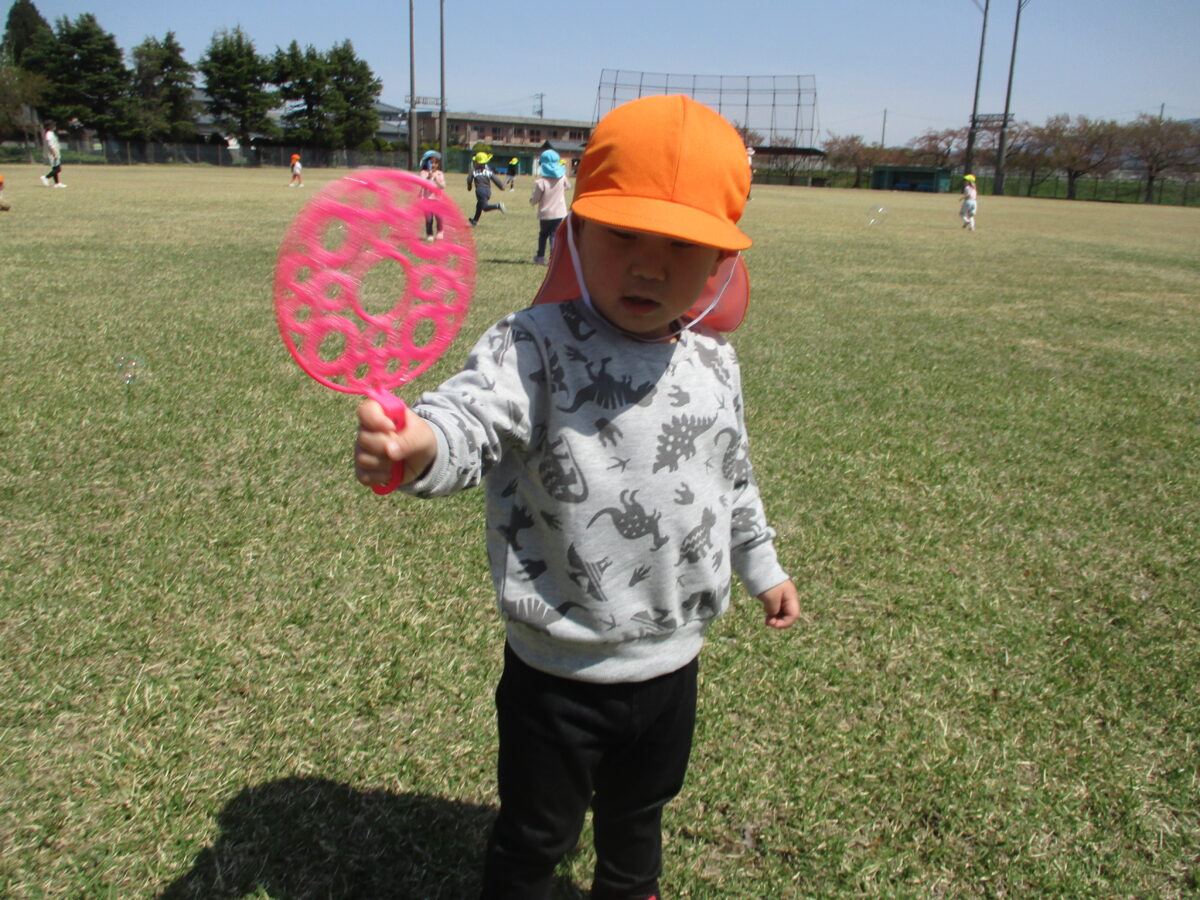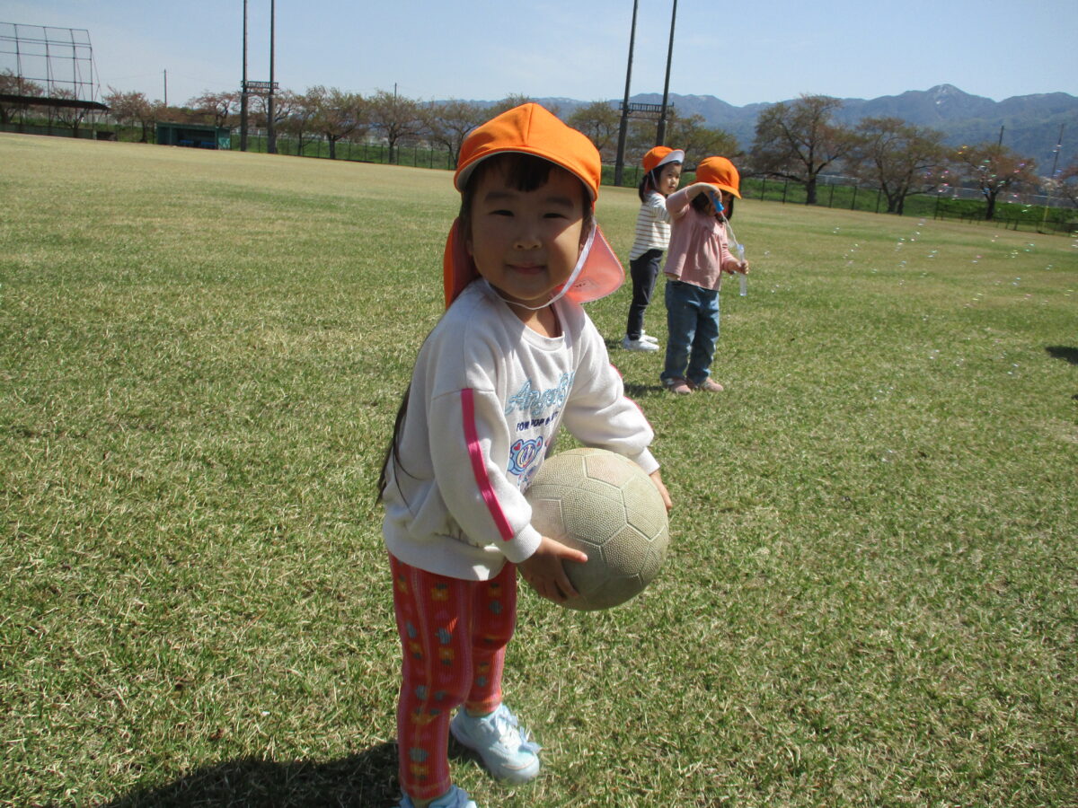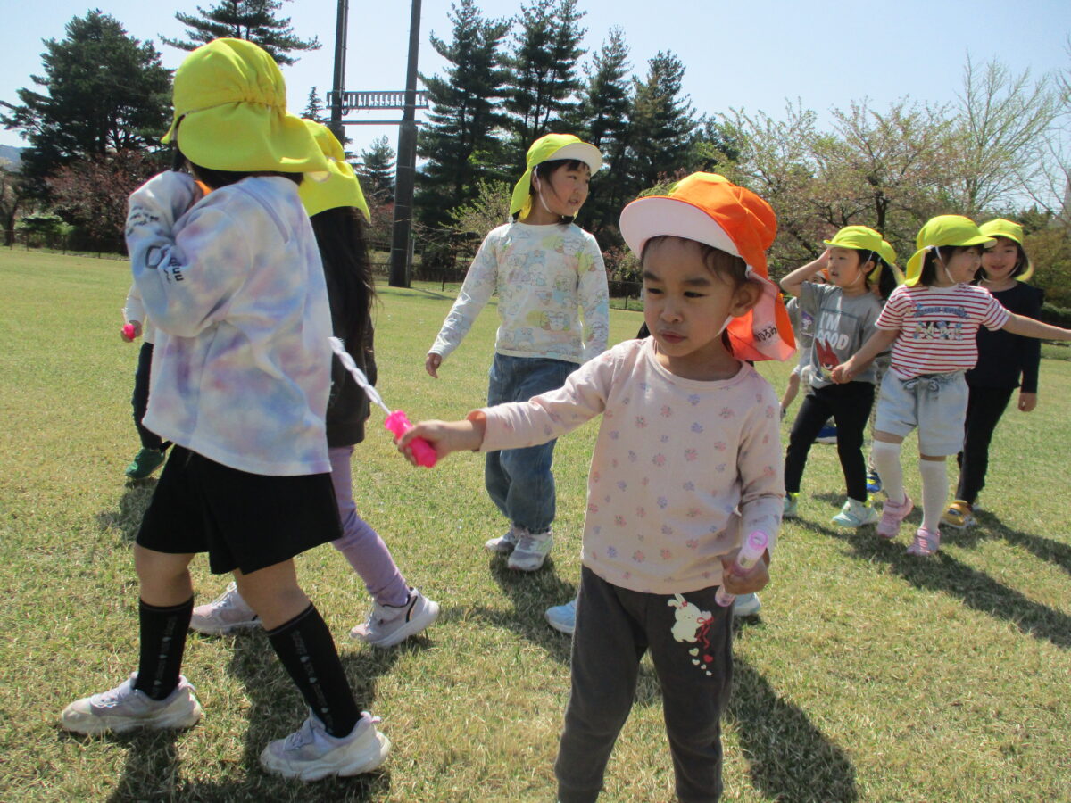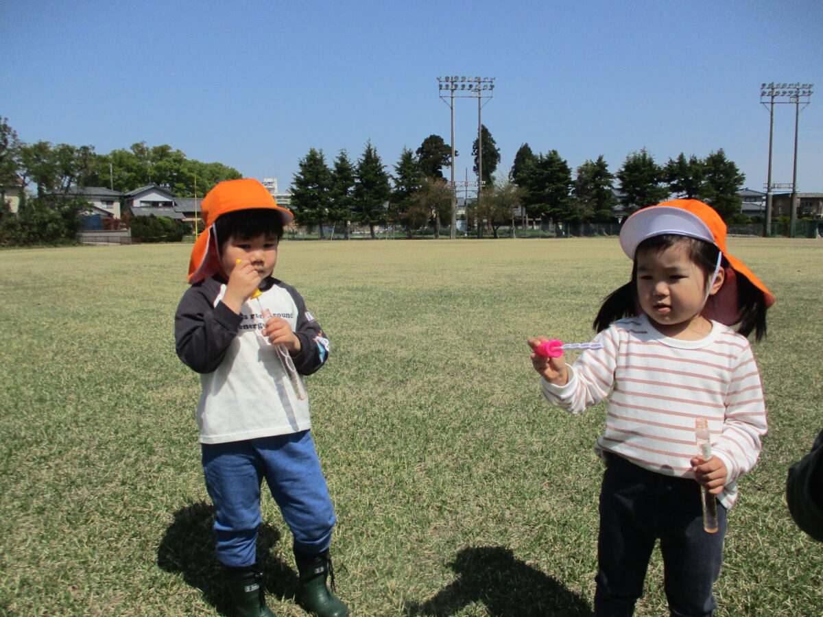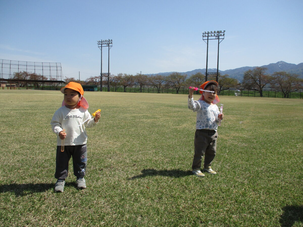 気温が少しずつ暖かくなり、お外遊びが気持ちの良い気候になってきましたね。毎日のびのびと元気いっぱいに遊ぶはなぐみさん。昨日は城ノ内球場へ遊びに行ってきました。広い球場でシャボン玉やボール遊び、追いかけっこなど、目一杯楽しみました。