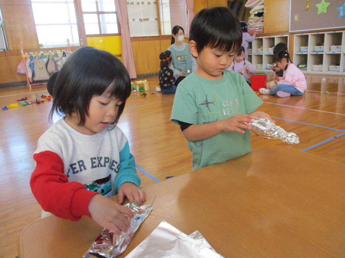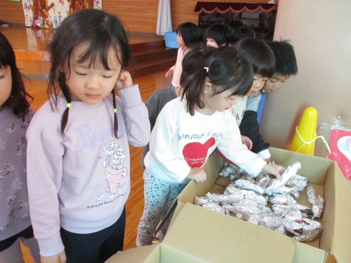 さつま芋をアルミホイルで包むお仕事を頑張りました。手際が良く、次から次へとあっという間に終わりました!