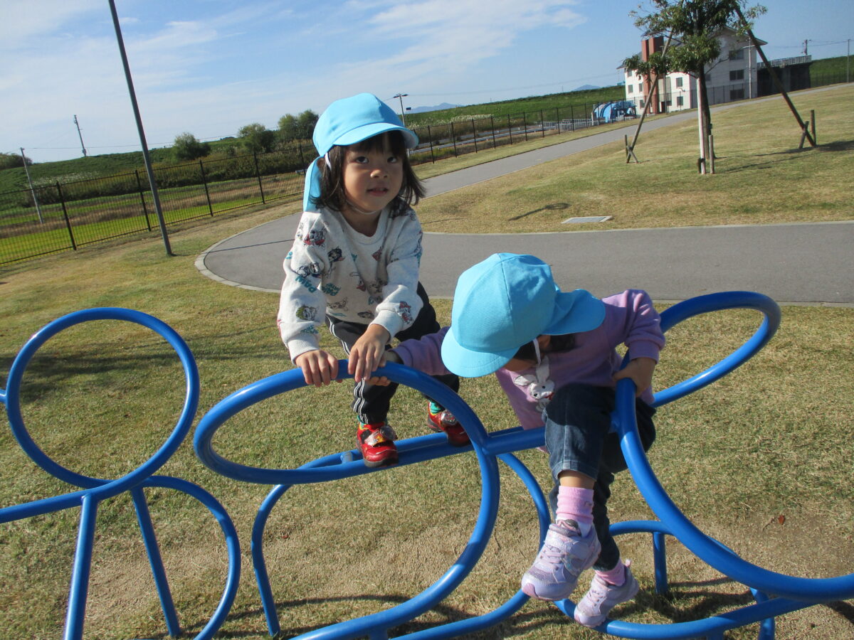 お天気にも恵まれ、秋晴れの気持ちの良い気候のなか、大型遊具やブランコなどで思いきり遊んできました。