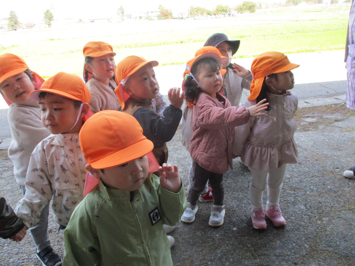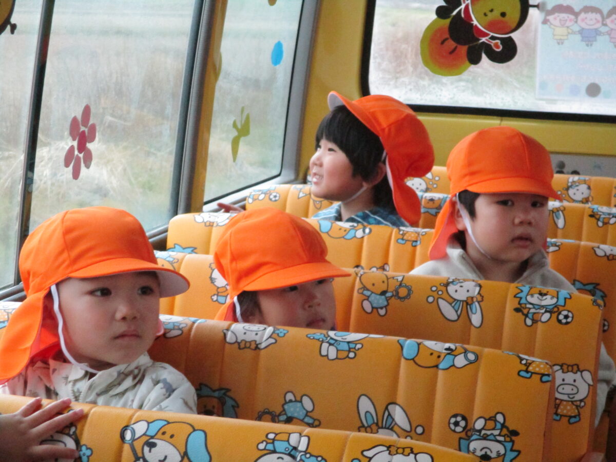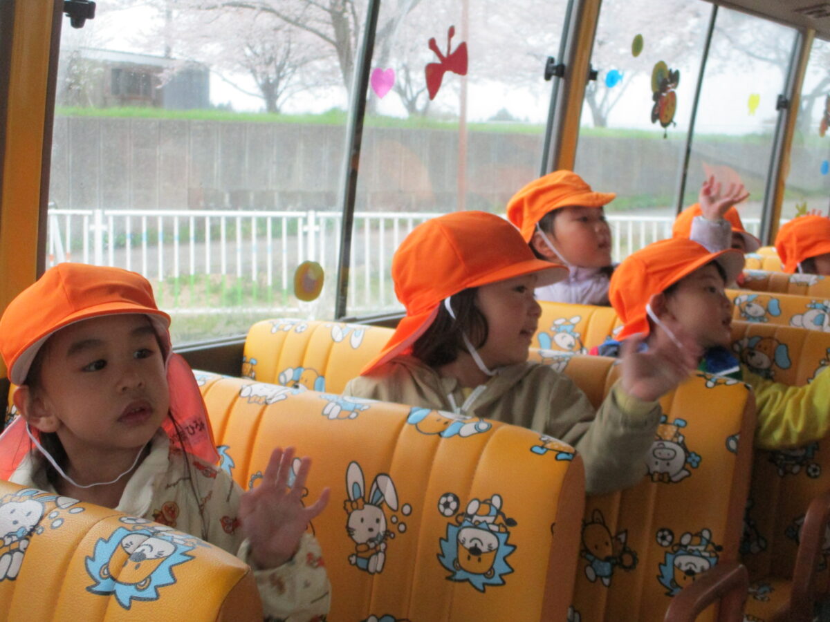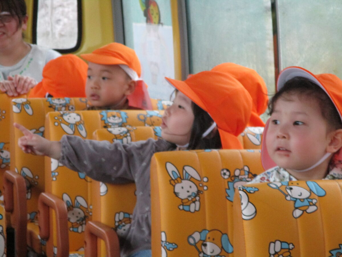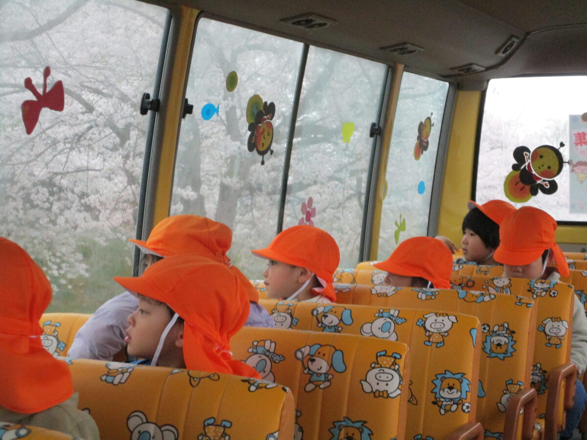 火曜日はお花見ドライブに行き、バスの中から桜を眺めていたはな組さん。一人の子が「あっちにさくらがある。」と教えてくれると、「こっちにもさくらあるよ。」と子どもたち同士でも会話をしながら楽しんでいる姿が見られました。