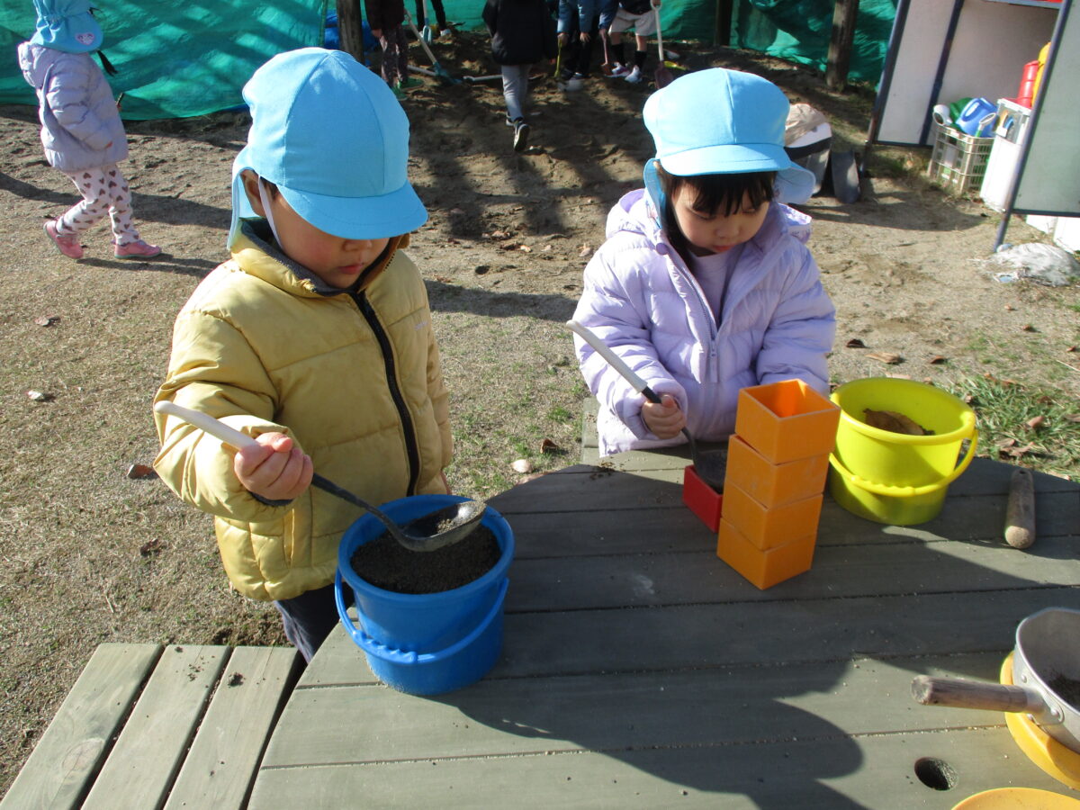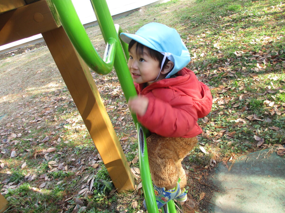 寒さが身に染みる季節になりましたが、子ども達は元気いっぱいに園庭遊びを楽しんでいます。沢山身体を動かして遊んだり、自然に触れながら思い思いの遊びに夢中になっています。