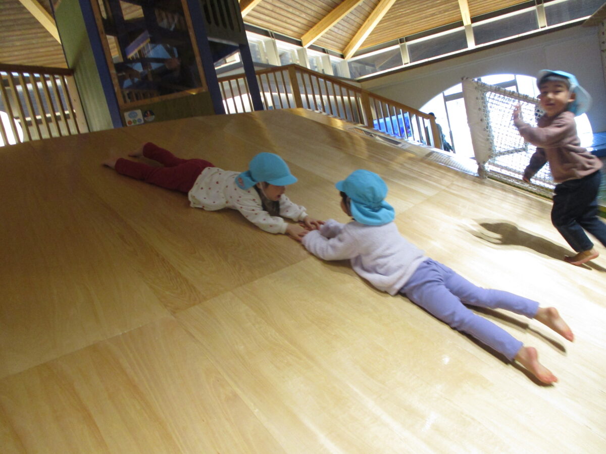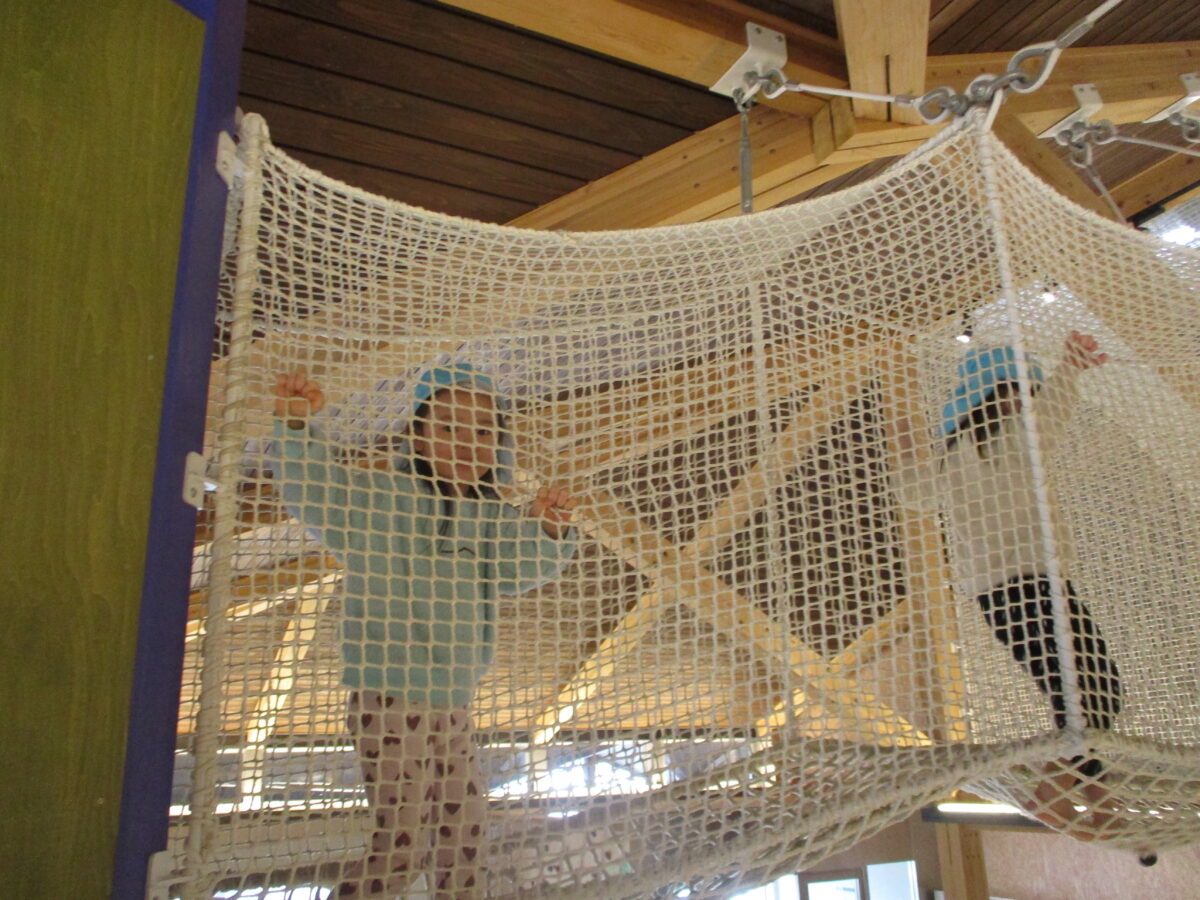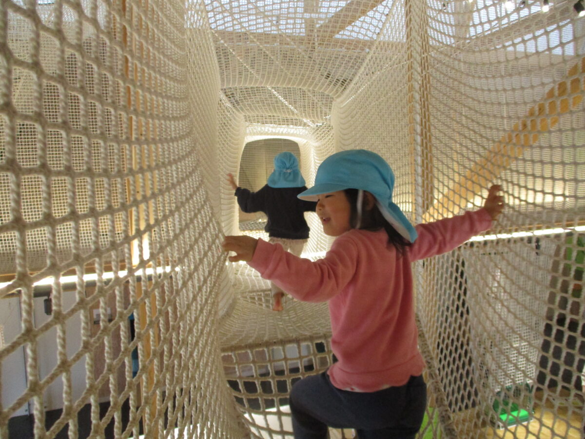 ネット遊具では、みんなあっという間に上まで登っていきます。広いネットの中をお友達と仲良く歩き回っていました。
