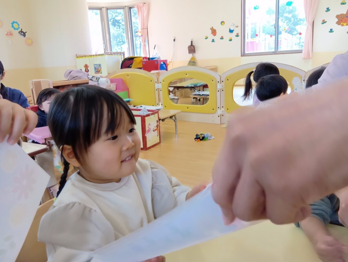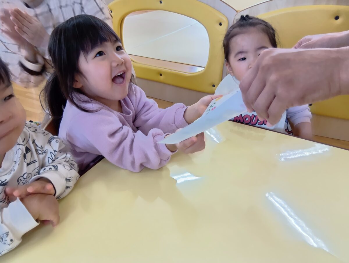 ”これは何だろう?”と賞状をよく見る子、手でグシャっと触ってみる子、嬉しくて体をくねらせながら賞状受け取る子など、それぞれが思い思いに賞状を受け取っていましたよ。